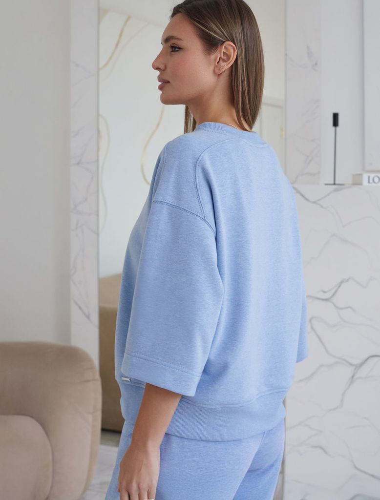Состав: 80%Хлопок 20%ПЭ Плотность: 320 Г/м2 Свободный свитшот голубого цвета с эффектом меланж выполнен из мягкого петельчатого футера двухнитки с добавлением эластана, что обеспечивает комфортную пос... Показать описаниеадку и комфорт. Материал отличается мягкостью и приятной текстурой, позволяя коже дышать и обеспечивая максимальное удобство при носке, а так же хорошей износостойкостью и сохраняет форму даже после многочисленных стирок. Круглый ворот и широкие рукава средней длины придают свитшоту стильный и современный вид и делают образ расслабленным и непринужденным, такой вариант отлично сядет на большие размеры, подчеркивая достоинства фигуры. .Джемпер идеально подходит для повседневной носки и отлично подойдет тем, кто ценит удобство и свободу движений без компромиссов по стилю. Этот свитшот станет отличным выбором в прохладную погоду в комплекте с бомбером D49,141 или уютным дополнением к домашнему образу в комплекте с брюками D44.157