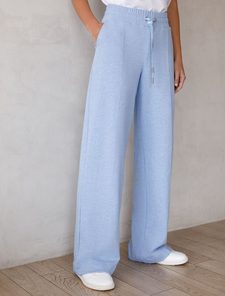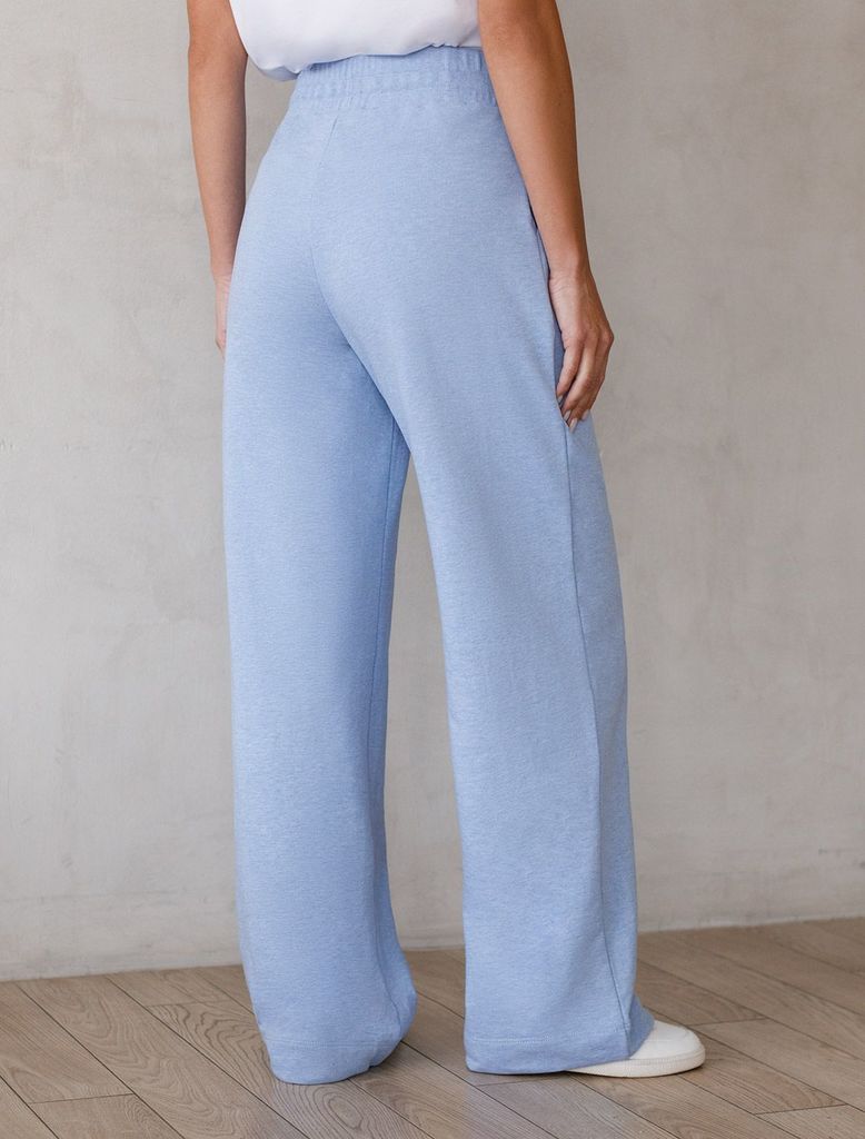 Состав: 80%Хлопок 20%ПЭ Плотность: 320 Г/м2 Брюки прямого кроя с удобным эластичным поясом на резинке и карманами по бокам выполнены из премиального футера-двухнитки. Наличие эластана в составе гарант... Показать описаниеирует комфорт и долговечность изделия, материал хорошо пропускает воздух, позволяя телу дышать.. Эти уютные брюки нежного голубого цвета с эффектом меланж созданы для вашего комфорта. Свободный прямой крой обеспечивает свободу движений и максимальное удобство в любых ситуациях, поэтому они подойдут и на большие размеры, а так же на высокий или низкий рост. Фигура подчеркивается, а силуэт визуально вытягивается за счет кроя палаццо и застроченных декоративных стрелок. Вы можете создать стильный образ на каждый день в сочетании с джемпером D49.139 и бомбером D49.141. В повседневных трикотажных брюках вы будете чувствовать себя комфортно и уверенно, наслаждаясь каждым моментом дня.