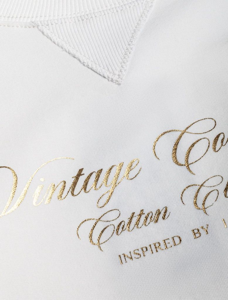 Состав: 95%Хлопок 5%ПУ Плотность: 320 Г/м2 Стильный свитшот белого цвета из премиального футера двухнитки с эластаном сочетает в себе комфорт и оригинальность. Джемпер выполнен из натурального хлопка,... Показать описание который обеспечивает мягкость и дышащие свойства ткани. Нежный материал дарит ощущение уюта в любое время года, а премиальное качество изготовления гарантирует долговечность и сохранение формы после множества стирок. Особенность изделия — спущенная линия плеча и аккуратные разрезы, которые добавляют современный акцент и делают образ более выразительным. Принт в виде надписи придает индивидуальность, позволяя выделиться без лишней вычурности. Перевод надписи Vintage collection Cotton club Inspired by 1978 - Винтажная коллекция Cotton Club, вдохновленная 1978 годом. Дополнен металлическим логотипом бренда. Представлена широкая размерная линейка, включая маленькие и большие размеры, что позволяет подобрать идеальный вариант для разной фигуры и роста. Этот уютный свитшот отлично подходит для повседневной носки благодаря своей комфортной посадке и мягкой текстуре. Он станет универсальным элементом гардероба, легко сочетающимся с различными стилями одежды. Свободный джемпер из футера станет отличным выбором для активного отдыха, обеспечивая стильный внешний вид и удобство весной, летом и любое другое время года. Рекомендуем сочетать с артикулами: D44.166, D44.135