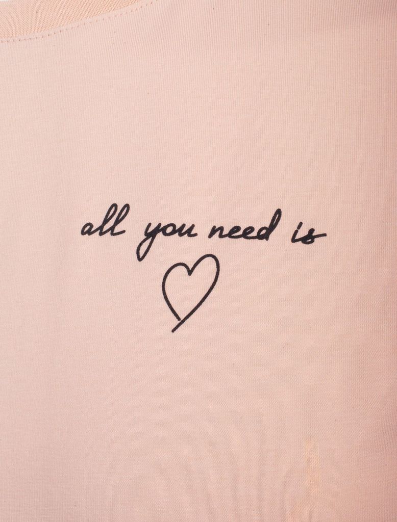 Состав: 92%Хлопок 8%ПУ Плотность: 170 Г/м2 Модная футболка пудрового цвета привлекает внимание своим интересным дизайном и ярким принтом. Благодаря прямому крою изделие комфортно садится на любую фигу... Показать описаниеру, в том числе на большие размеры, и не сковывает движений. Круглый вырез подчеркивает современный стиль, а натуральный материал из хлопка с добавлением эластана обеспечивает удобство в повседневной носке и приятные тактильные ощущения. Прочность и износостойкая структура позволяют сохранять свежий внешний вид после множества стирок. Принт в виде надписи и сердца нанесен красками с устойчивым покрытием, перевод надписи: Al you need is love- Все, что вам нужно это любовь. Стильная футболка гармонично вписывается в любой гардероб и подойдет для прогулок, отдыха или неформальных встреч. Благодаря особенностям кроя модель хорошо сидит, скрывая недостатки и подчеркивая достоинства. Яркая футболка идеально сочетается с базовыми вещами, позволяя создавать новые интересные образы каждый день.