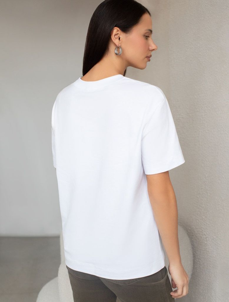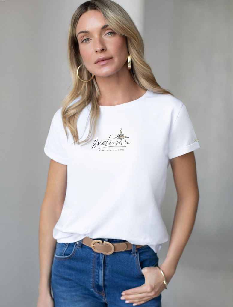 Состав: 92%Хлопок 8%ПУ Плотность: 170 Г/м2 Модная футболка белого цвета привлекает внимание своим интересным дизайном и ярким принтом. Благодаря прямому крою изделие комфортно садится на любую фигуру,... Показать описание в том числе на большие размеры, и не сковывает движений. Круглый вырез подчеркивает современный стиль, а натуральный материал из хлопка с добавлением эластана обеспечивает удобство в повседневной носке и приятные тактильные ощущения. Прочность и износостойкая структура сохраняет первоначальную форму футболки после множества стирок. Рукава имеют аккуратные подгибы, что придает изделию завершенность и помогает сохранять аккуратный внешний вид. Принт в виде надписи нанесен красками с устойчивым покрытием, перевод надписи: Exluzive moments collection only - Только коллекция эксклюзивных моментов. Стильная футболка гармонично вписывается в любой гардероб и подойдет для прогулок, отдыха дома или неформальных встреч. Благодаря особенностям кроя модель хорошо сидит, скрывая недостатки и подчеркивая достоинства. Удобная футболка идеально сочетается с базовыми вещами, позволяя создавать новые интересные образы каждый день.
