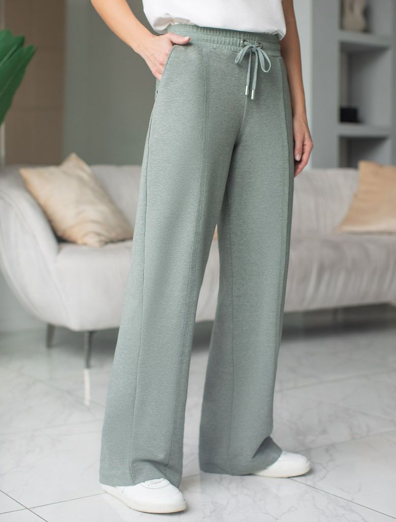 Прямые трикотажные брюки на резинке из футера двухнитки эластичныеВопросы по товару