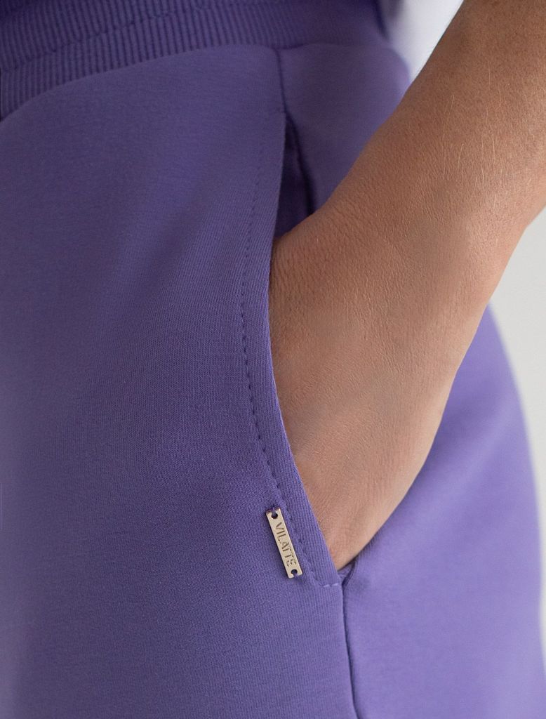 Состав: 95%Хлопок 5%ПУ Плотность: 240 Г/м2 Брюки лавандового цвета прямого кроя выполнены из премиального футера-двухнитки. Лаконичный силуэт поддерживают застроченные стрелки, зрительно вытягивающие ... Показать описаниесилуэт. Удобный пояс на резинке регулируется хлопковым шнурком с золотистой фурнитурой. Наличие эластана в составе изделия гарантирует комфорт и долговечность изделия. Эластичный материал хорошо пропускает воздух, позволяя телу дышать, и легко тянется, не ограничивая движения. Эти уютные брюки созданного для вашего комфорта. Нежный и стильный вариант подходит на любую фигуру, благодаря своей идеальной посадке. Свободный прямой крой обеспечивает свободу движений и максимальное удобство в любых ситуациях, поэтому они подойдут и на большие размеры, включая 56 размер. Стильный расклешенный крой добавляет изюминку в ваш образ. Эти брюки универсальны и могут стать отличным вариантом, как для занятий, так и для повседневной носки. Они легко вписываются в повседневный образ, благодаря универсальности и элегантности. Достоинства фигуры подчеркиваются, а силуэт визуально вытягивается за счет кроя палаццо и стрелок. В этих спортивных брюках вы будете чувствовать себя комфортно и уверенно, наслаждаясь каждым моментом дня. Рекомендуем сочетать с артикулами: D49.160, D49.167, D49.168