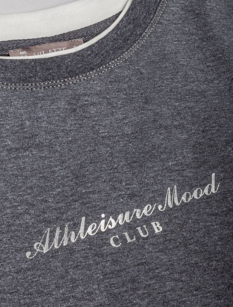 Состав: 95%Хлопок 5%ПУ Плотность: 240 Г/м2 Стильный свитшот темно-серого цвета из премиального футера двухнитки с эластаном сочетает в себе комфорт и оригинальность. Джемпер выполнен из натурального х... Показать описаниелопка, который обеспечивает мягкость и дышащие свойства ткани. Нежный материал дарит ощущение уюта в любое время года, а премиальное качество изготовления гарантирует долговечность и сохранение формы после множества стирок. Особенность изделия — спущенная линия плеча и аккуратные разрезы, которые добавляют современный акцент и делают образ более выразительным. Эффект имитации футболки в виде белой отделки на вороте делает дизайн динамичным и повышает градус стиля. Принт в виде надписи придает индивидуальность, позволяя выделиться без лишней вычурности. Перевод надписи Athleisure mood club - Клуб спортивного настроения. Дополнен металлическим логотипом бренда. Представлена широкая размерная линейка, включая маленькие и большие размеры, что позволяет подобрать идеальный вариант для разной фигуры и роста. Этот уютный свитшот отлично подходит для повседневной носки благодаря своей комфортной посадке и мягкой текстуре. Он станет универсальным элементом гардероба, легко сочетающимся с различными стилями одежды. Свободный джемпер из футера станет отличным выбором для активного отдыха, обеспечивая стильный внешний вид и удобство весной, летом или в прохладную погоду. Рекомендуем сочетать с артикулами: D44.135, D44.166