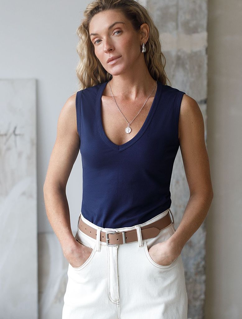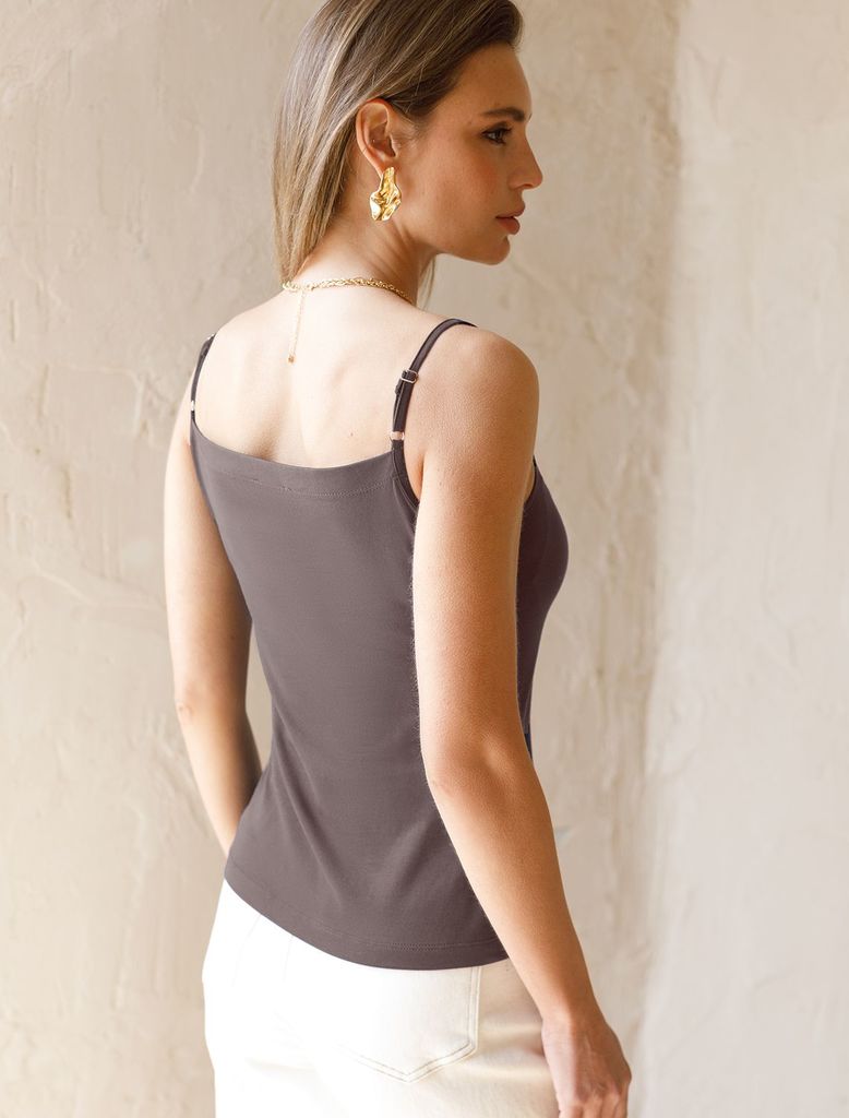 Топ с V-вырезом на регулируемых бретелях эластичный из премиального хлопкаВопросы по товару