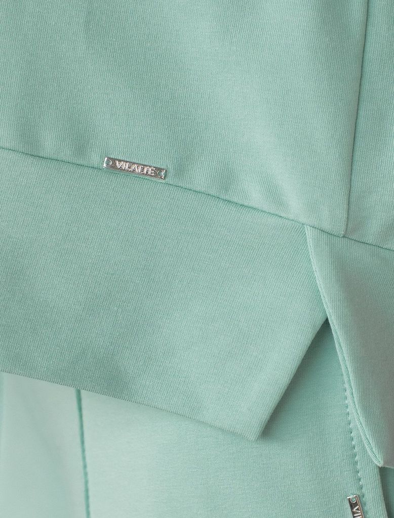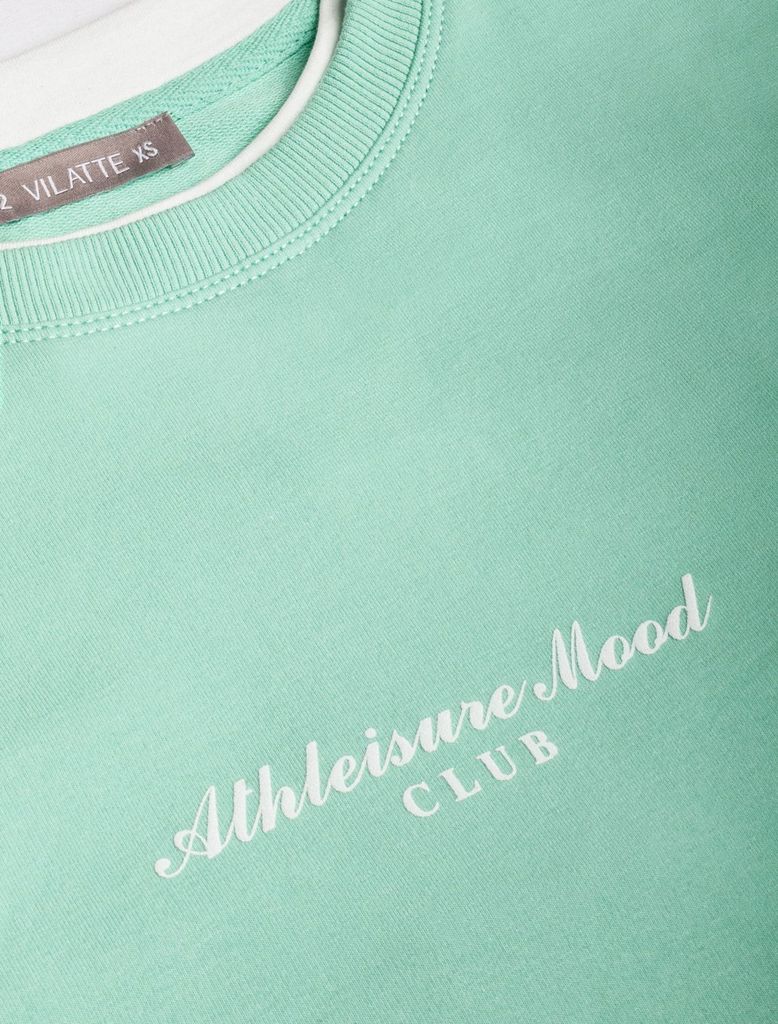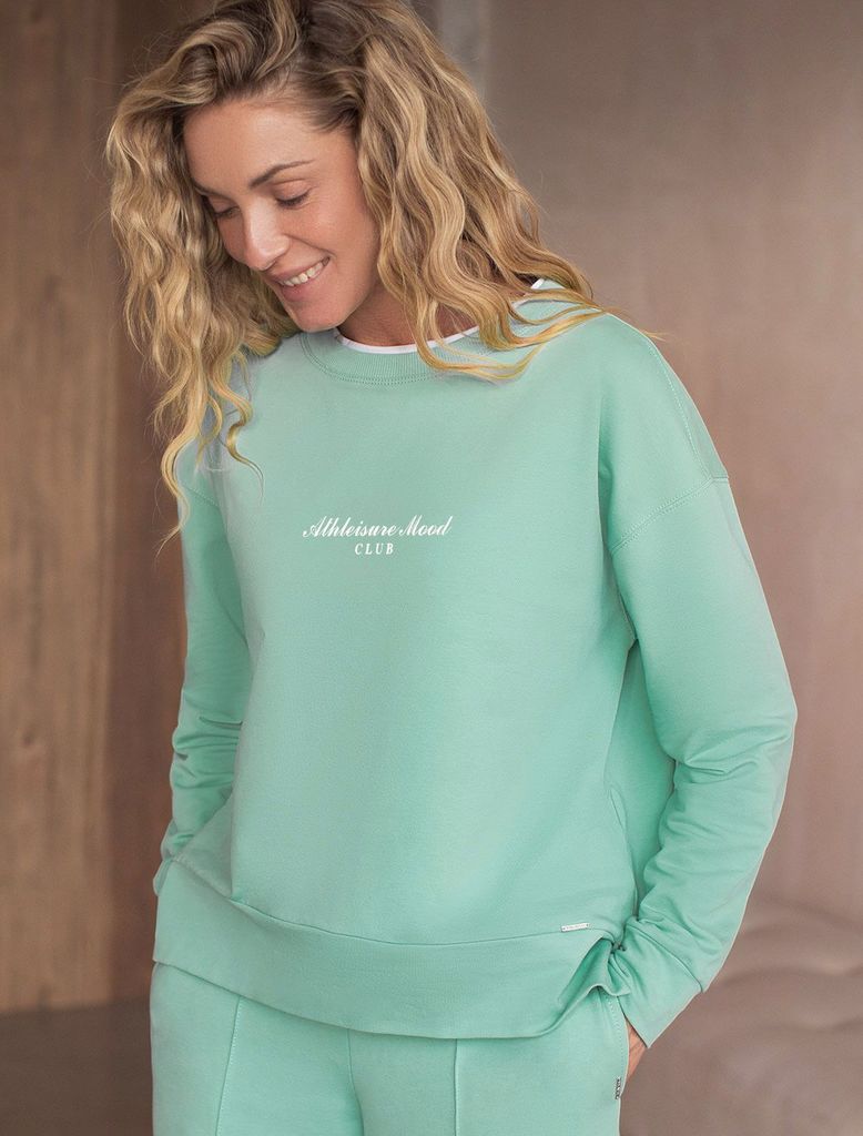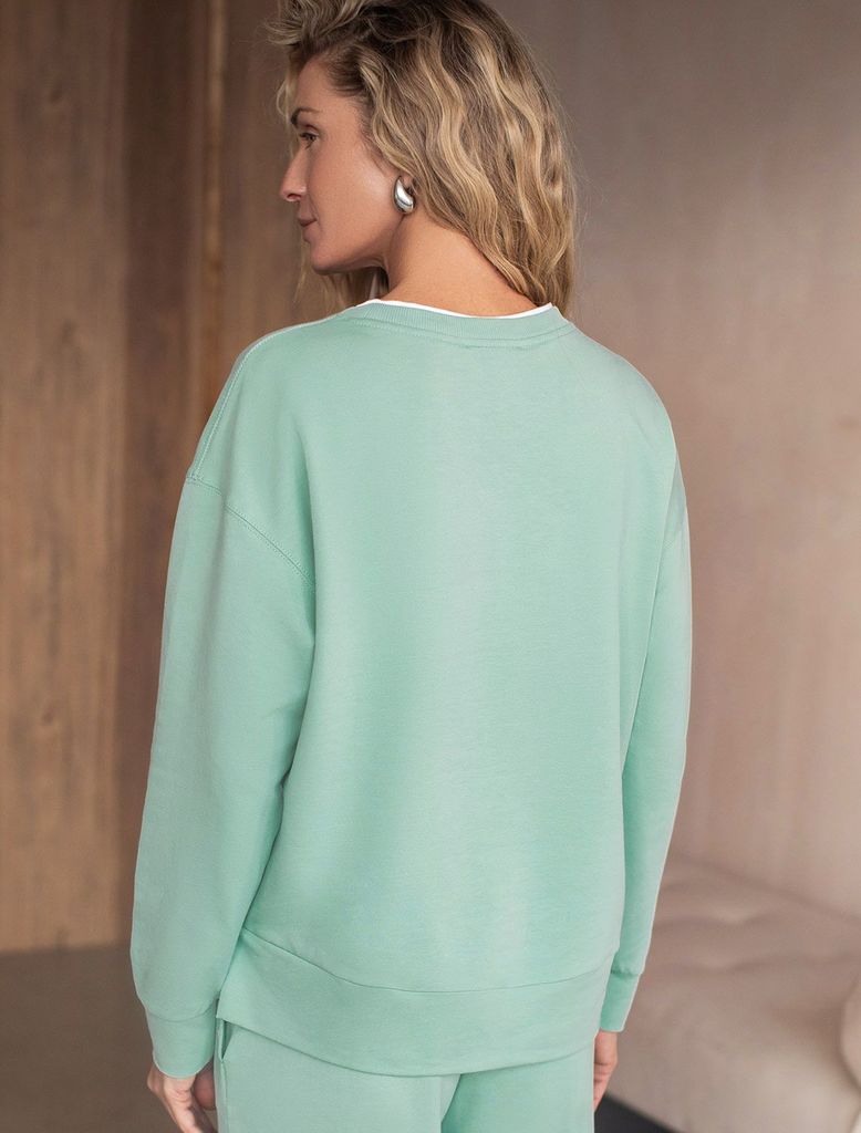 Состав: 95%Хлопок 5%ПУ Плотность: 240 Г/м2 Стильный свитшот мятного цвета из премиального футера двухнитки с эластаном сочетает в себе комфорт и оригинальность. Джемпер выполнен из натурального хлопка... Показать описание, который обеспечивает мягкость и дышащие свойства ткани. Нежный материал дарит ощущение уюта в любое время года, а премиальное качество изготовления гарантирует долговечность и сохранение формы после множества стирок. Особенность изделия — спущенная линия плеча и аккуратные разрезы, которые добавляют современный акцент и делают образ более выразительным. Эффект имитации футболки в виде белой отделки на вороте делает дизайн динамичным и повышает градус стиля. Принт в виде надписи придает индивидуальность, позволяя выделиться без лишней вычурности. Перевод надписи Athleisure mood club - Клуб спортивного настроения. Дополнен металлическим логотипом бренда. Представлена широкая размерная линейка, включая маленькие и большие размеры, что позволяет подобрать идеальный вариант для разной фигуры и роста. Этот уютный свитшот отлично подходит для повседневной носки благодаря своей комфортной посадке и мягкой текстуре. Он станет универсальным элементом гардероба, легко сочетающимся с различными стилями одежды. Свободный джемпер из футера станет отличным выбором для активного отдыха, обеспечивая стильный внешний вид и удобство весной, летом или в прохладную погоду. Рекомендуем сочетать с артикулами: D44.135, D44.166