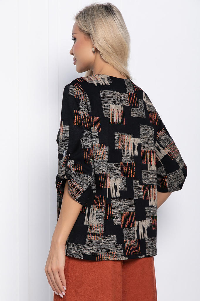Артикул: Б11207. Тип ткани: смесовая. Состав: 65% полиэстер, 30% вискоза, 5% эластан. Материал: трикотаж. Цвет: мультиколор. Принт: штрихи. Вид застежки: без застёжки. Силуэт: свободный... Показать описание. Карманы: отсутствуют. Подкладка: отсутствует. Декоративные элементы: паты. Длина по спинке от верхней точки плеча: 44-48/ 62 см, 50-54/ 63 см. Размер изделия на модели: 44. Рост модели: 168 см. Интересный принт, который привлекает внимание в образе. Джемпер отлично сочетается с джинсами и брюками. Имеет акцентные рукава 3/4 с патами, что делает дизайн уникальным. Свободный крой джемпера позволяет скрыть некоторые недостатки фигуры и создать комфортный образ. Уход за изделием: ручная стирка до 30 градусов; нельзя отбеливать; отжим запрещён; гладить при t не более 110 С; гладить с изнанки. Внимание! Рекомендуем ориентироваться на размерную сетку и выбирать свой привычный размер, согласно размерной таблице. *Допуск отклонения длины при массовом производстве 1-3 см является нормой.