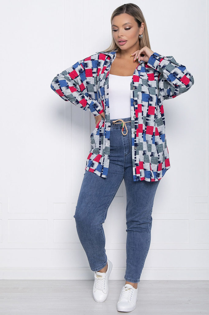Артикул: Б10869. Тип ткани: смесовая. Состав: 95% п/э, 5% эластан. Материал: блузочная (супер софт). Цвет: мультиколор. Принт: абстракция. Вид застежки: пуговицы. Силуэт: оверсайз. Карм... Показать описаниеаны: отсутствуют. Подкладка: отсутствует. Декоративные элементы: отсутствуют. Длина по спинке от верхней точки плеча: 46-48/ 68 см, 50-52/ 70 см, 54/ 74 см. Размер изделия на модели: 52. Рост модели: 170 см. Яркая и разноцветная блузка выделит вас из толпы! А благодаря своему оверсайз крою она подходит для любой фигуры. Можно использовать в качестве легкой красивой накидки. Застегивается на пуговицы, что делает ее удобной в использовании. Уход за изделием: ручная стирка до 30 градусов; нельзя отбеливать; отжим запрещён; гладить при t не более 110 С; гладить с изнанки. *Допуск отклонения длины при массовом производстве 1-3 см является нормой.