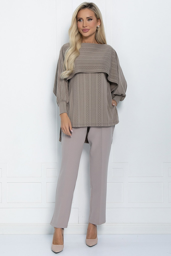 Артикул: Б11198. Тип ткани: смесовая. Состав: 65% полиэстер, 30% вискоза, 5% эластан. Материал: трикотаж. Цвет: бежевый. Принт: отсутствует. Вид застежки: без застежки. Силуэт: свободны... Показать описанией. Карманы: отсутствуют. Подкладка: отсутствует. Декоративные элементы: отсутствуют. Длина по переду (ассиметричный крой): 44/ 64 см, 46/ 66 см, 48/ 67 см, 50/ 68 см, 52/ 69 см, 54/ 70 см. Длина по спинке от верхней точки плеча: 44-46/ 76 см, 48/ 77 см, 50-52/ 78 см, 54/ 80 см. Размер изделия на модели: 44. Рост модели: 168 см. Комфортный джемпер свободного кроя - повседневный элемент женской одежды. Модель оригинальная, с имитацией двойной кофты. Горловина округлая, рукав спущенный. Модель достаточно свободная, легкий оверсайз, отлично садится на любую фигуру, скрывая все недостатки. Также подойдет для будущих мам. Уход за изделием: ручная стирка до 30 градусов; нельзя отбеливать; отжим запрещён; гладить при t не более 110 С; гладить с изнанки. Внимание! Рекомендуем ориентироваться на размерную сетку и выбирать свой привычный размер, согласно размерной таблице. *Допуск отклонения длины при массовом производстве 1-3 см является нормой.