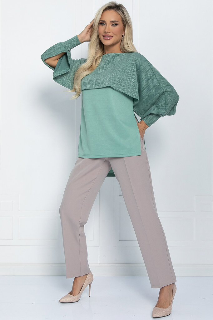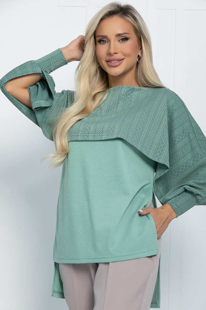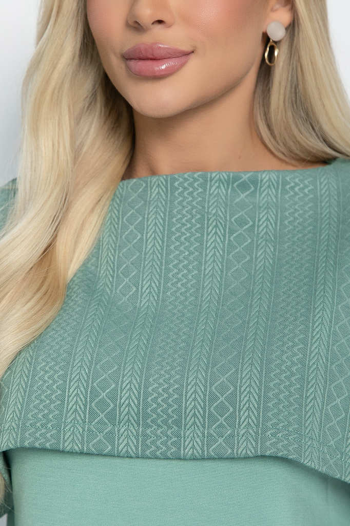 Артикул: Б11498. Тип ткани: смесовая. Состав: 65% полиэстер, 30% вискоза, 5% эластан. Материал: трикотаж. Цвет: фисташка. Принт: отсутствует. Вид застежки: без застежки. Силуэт: свободн... Показать описаниеый. Карманы: отсутствуют. Подкладка: отсутствует. Декоративные элементы: отсутствуют. Длина по переду (ассиметричный крой): 44/ 64 см, 46/ 66 см, 48/ 67 см, 50/ 68 см, 52/ 69 см, 54/ 70 см. Длина по спинке от верхней точки плеча: 44-46/ 76 см, 48/ 77 см, 50-52/ 78 см, 54/ 80 см. Размер изделия на модели: 44. Рост модели: 167 см. Комфортный джемпер свободного кроя - повседневный элемент женской одежды. Модель оригинальная, с имитацией двойной кофты. Верх изделия выполнен с рисунком вязанного полотна, по низу однотонное. Горловина округлая, рукав спущенный. Модель достаточно свободная, легкий оверсайз, отлично садится на любую фигуру, скрывая все недостатки. Также подойдет для будущих мам. Уход за изделием: ручная стирка до 30 градусов; нельзя отбеливать; отжим запрещён; гладить при t не более 110 С; гладить с изнанки. Внимание! Рекомендуем ориентироваться на размерную сетку и выбирать свой привычный размер, согласно размерной таблице. *Допуск отклонения длины при массовом производстве 1-3 см является нормой.