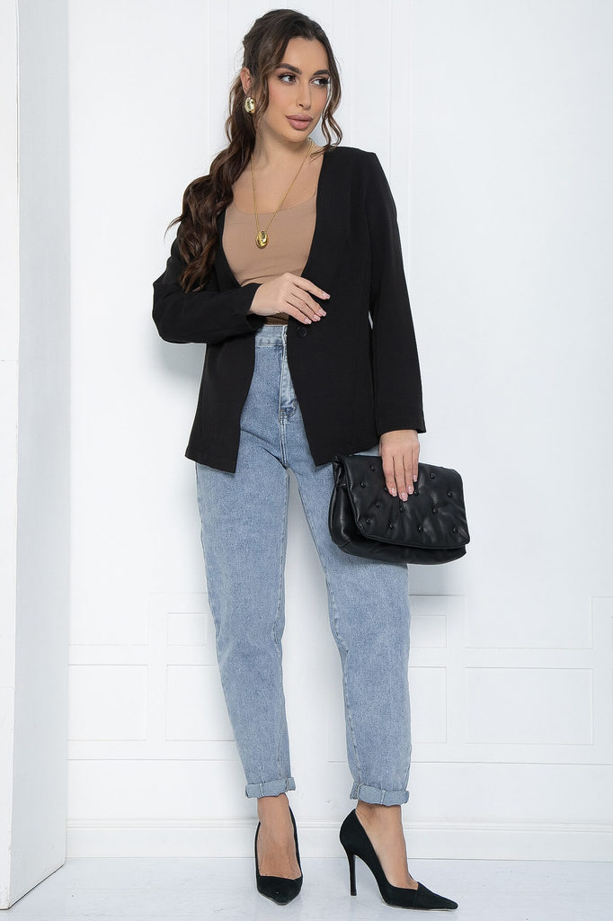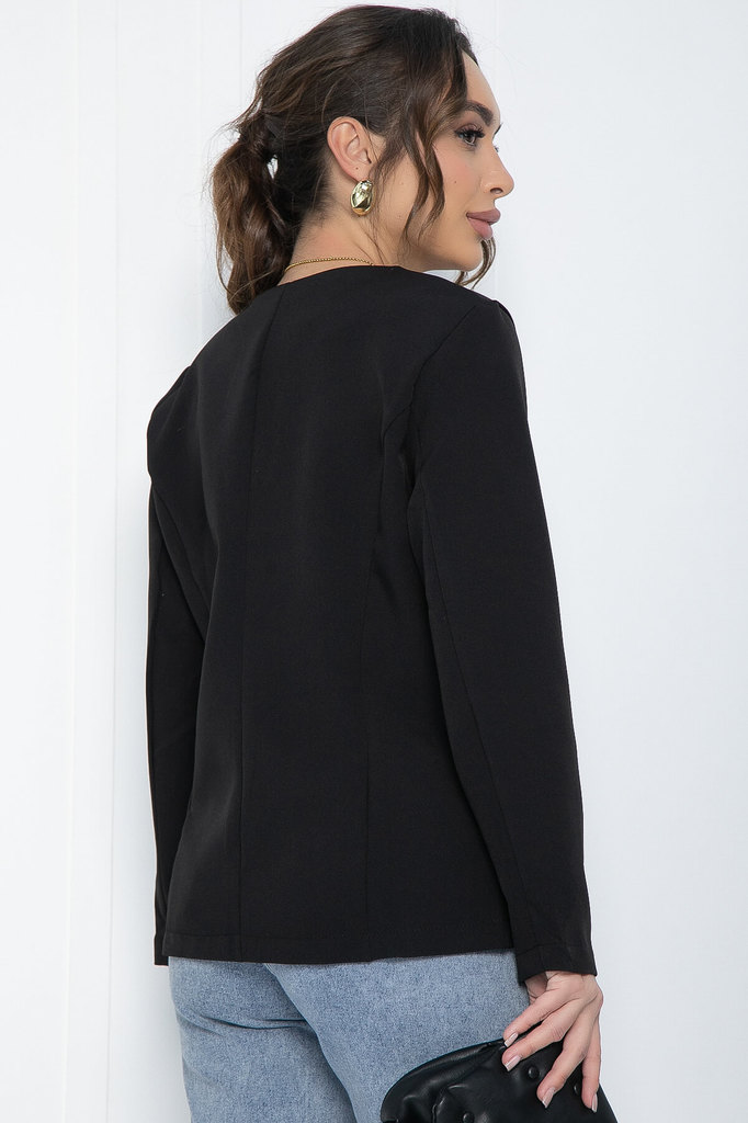 Артикул: Б11896. Тип ткани: синтетическая. Состав: 97% полиэстер, 3% эластан. Материал: костюмная. Цвет: чёрный. Принт: отсутствует. Вид застежки: пуговица. Силуэт: приталенный. Карманы... Показать описание: отсутствуют. Подкладка: отсутствует. Декоративные элементы: отсутствуют. Длина по спинке от верхней точки плеча: 44/ 63 см, 46/ 64 см, 48/ 65 см, 50-54/ 67 см. Размер изделия на модели: 44 Рост модели: 167 см. Пиджак – это универсальный элемент гардероба, который не только можно носить каждый день, но и использовать для создания делового и вечернего образа. Он идеально подходит для различных ситуаций и мероприятий, отлично сочетаясь как с брюками, так и с юбками. Уход за изделием: ручная стирка до 30 градусов; нельзя отбеливать; отжим запрещён; гладить при t не более 110 С; гладить с изнанки. Внимание! Рекомендуем ориентироваться на размерную сетку и выбирать свой привычный размер, согласно размерной таблице. *Допуск отклонения длины при массовом производстве 1-3 см является нормой.