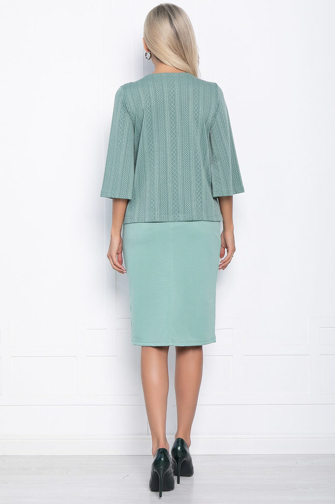 Артикул: К10911. Тип ткани: смесовая. Состав: 65% п/э, 30% вискоза, 5% эластан. Материал: трикотаж. Цвет: фисташковый. Принт: отсутствует. Вид застежки: без застёжки. Карманы: отсутству... Показать описаниеют. Резинка в поясе: есть. Силуэт: полуприлегающий. Декоративные элементы: отсутствуют. Длина верха: 44-46/ 56 см, 48/ 57 см, 50-54/ 58 см. Длина юбки: 44-48/ 62 см, 50-54/ 64 см. Размер изделия на модели: 44. Рост модели: 168 см. Комфортный и элегантный костюм на каждый день. Костюм состоит из джемпера и юбки карандаш. Юбка на резинке. Юбка-карандаш незаменима при создании делового образа. Компанию ей составляет свободная блузка с рукавом, который книзу расширяется. Уход за изделием: ручная стирка до 30 градусов; нельзя отбеливать; отжим запрещён; гладить при t не более 110 С; гладить с изнанки. *Допуск отклонения длины при массовом производстве 1-3 см является нормой.