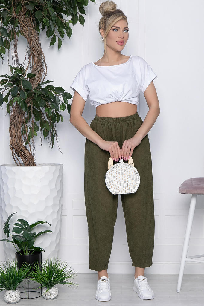 Артикул: Б10844. Тип ткани: смесовая. Состав: 98% п/э, 2% эластан. Материал: микровельвет. Цвет: хаки. Принт: отсутствует. Вид застежки: отсутствует. Талия на резинке. Тип посадки: средняя. ... Показать описаниеФасон: джоггеры. Пояс: отсутствует. Крой: свободный. Резинка в поясе: есть. Карманы: есть. Декоративные элементы: отсутствуют. Длина готового изделия по внутреннему шву: 44/ 64 см, 46/ 65 см, 48/ 66 см, 50/ 67 см, 52/ 68 см, 54/ 69 см. Длина готового изделия по боковому шву: 44-46/ 91 см, 48-50/ 92 см, 52-54/ 95 см. Размер изделия на модели: 44. Рост модели: 167 см и 170 см. Объёмные брюки в стиле бохо - это свободный непринужденный стиль современной моды. Шароварный силуэт создается за счет резинки по талии, свободной посадки в бедрах, бокового защипа по низу и оригинального высокого манжета в виде тюльпана. Свободные, прямые, просторные брюки бананы выгодно подчеркивают женские формы и скрывают недостатки. Комбинируйте их с различными видами топов, джемперов, блузок или футболок. Брюки выполнены из комфортной в носке ткани, которая не вытягивается и не деформируется после стирки. Уход за изделием: ручная стирка до 30 градусов; нельзя отбеливать; отжим запрещён; гладить при t не более 110 С; гладить с изнанки. *Допуск отклонения длины при массовом производстве 1-3 см является нормой.