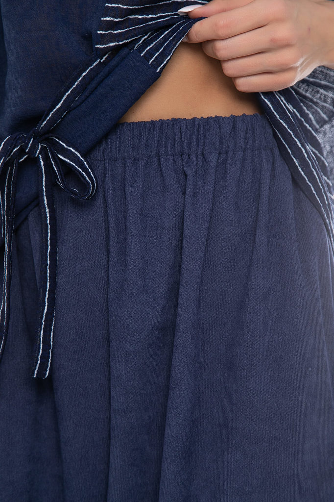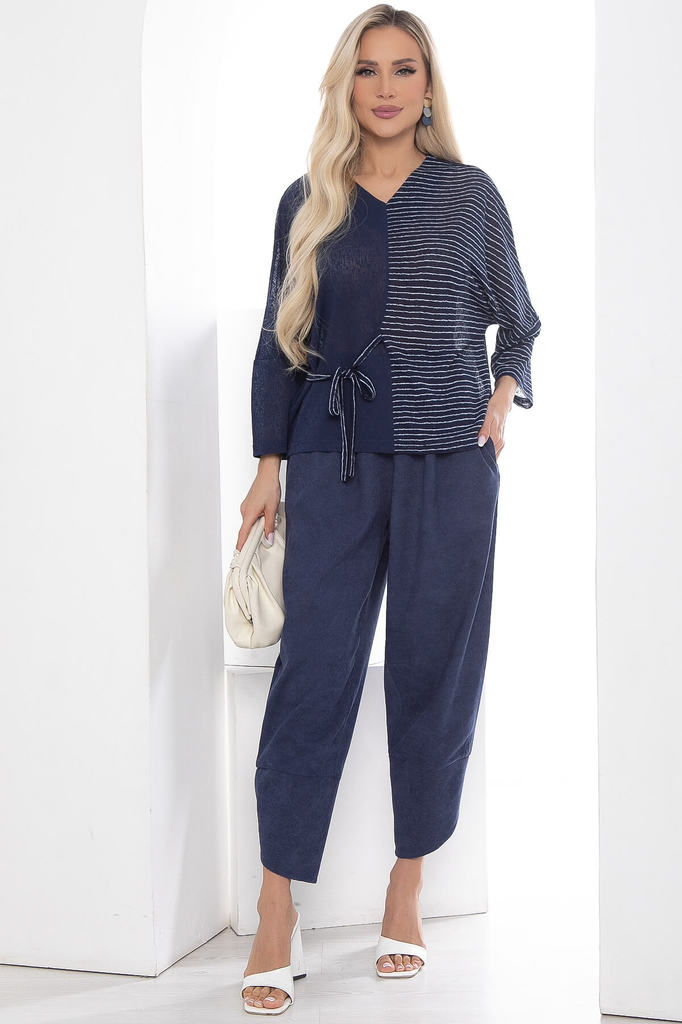 Артикул: Б10269. Ткань: микровельвет. Состав: 98% п/э, 2% эластан. Цвет: синий. Вид застежки: отсутствует. Силуэт: свободный. Карманы: есть. Длина изделия по боковому шву: 44/ 88 см, 46/ 89 ... Показать описаниесм, 48/ 90 см, 50/ 91см, 52-54/ 92 см. Рост модели: 168 см. Объемные брюки в стиле бохо - это свободный непринужденный стиль современной моды. Шароварный силуэт создается за счет резинки по талии, свободной посадки в бедрах, бокового защипа по низу и оригинального высокого манжета в виде тюльпана. Свободные, прямые, просторные брюки бананы выгодно подчеркивают женские формы и скрывают недостатки. Комбинируйте их с различными видами топов, джемперов, блузок или футболок. Брюки выполнены из комфортной в носке ткани, которая не вытягивается и не деформируется после стирки. Уход за изделием: ручная стирка до 30 градусов; нельзя отбеливать; деликатный отжим; гладить при t не более 110С; гладить с изнанки. *Допуск отклонения длины при массовом производстве 1-3 см является нормой.