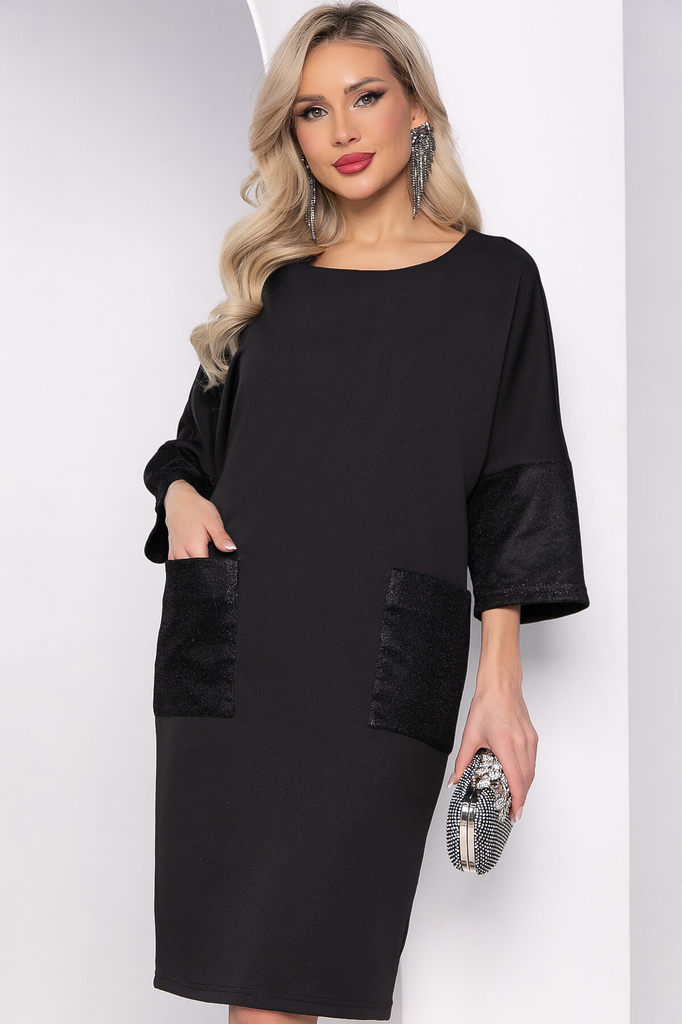 Артикул: П8075. Ткань: трикотаж. Состав: 63% вискоза, 34% п/э, 3% эластан. Цвет: чёрный. Вид застежки: без застёжки. Силуэт: бочонок. Карманы: есть (накладные). Тип горловины: округлый.... Показать описание Длина изделия по спинке: 44/ 93 см, 46/ 94 см, 48/ 95 см, 50/ 96 см, 52/ 98 см, 54/ 100 см. Рост модели: 168 см. Стильное платье силуэта "бочонок", длиной выше колена, с рукавом три четверти. Такое платье универсально, ведь оно уместно в совершенно разных ситуациях. Подходит женщинам, девушкам и подросткам с любым ростом, беременным и мамам на выписку, идеально смотрится как на торжественном мероприятии, так и в повседневной жизни благодаря игре аксессуаров. Уход за изделием: ручная стирка до 30 градусов; нельзя отбеливать; деликатный отжим; гладить при t не более 110 С; гладить с изнанки. *Допуск отклонения длины при массовом производстве 1-3 см является нормой.