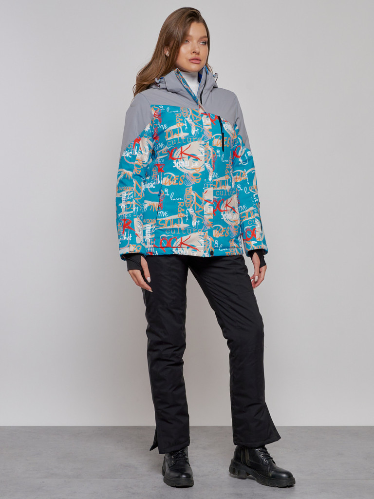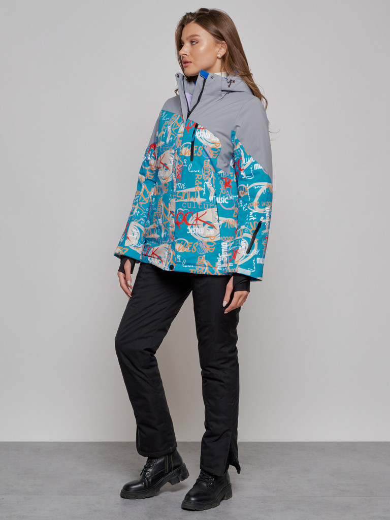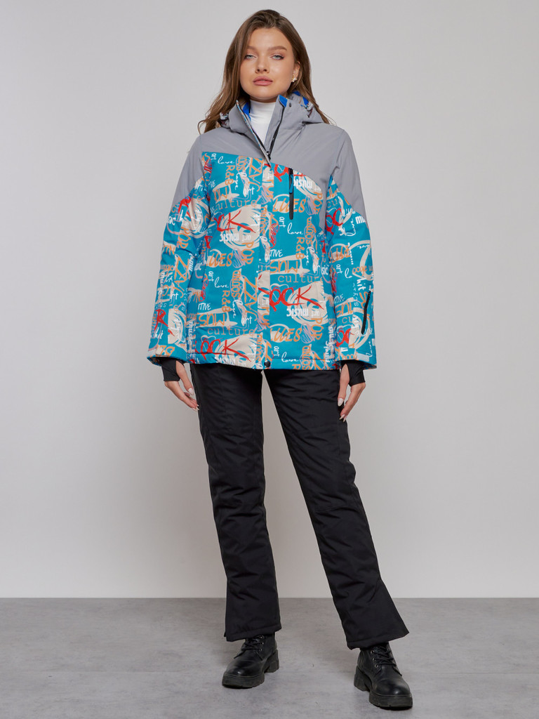 Горнолыжная куртка женская зимняя бирюзового цвета 2337BrВопросы по товару