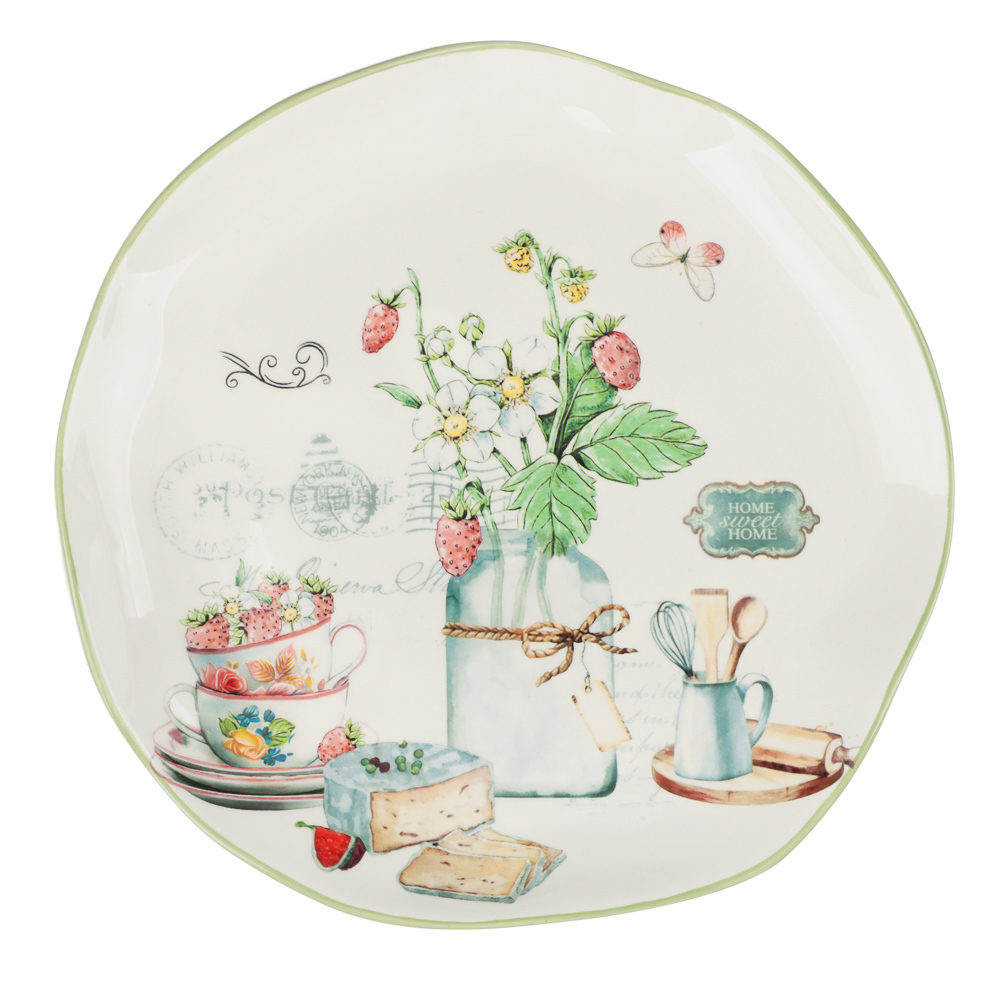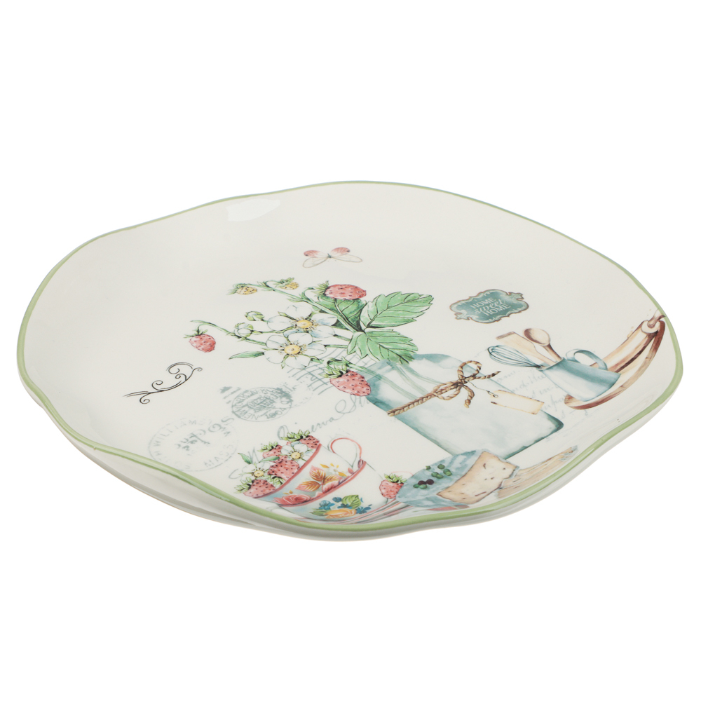 Тарелка MILLIMI «Земляника», размер 21,5х2,5 см – это стильная посуда для сервировки, которая добавит красок и летнего настроения в оформление стола. Имеет оригинальную форму с неровными плавными края... Показать описаниеми и очаровательным принтом с нежной земляничной росписью на белом фоне. Подходит для универсального использования: подачи десертов и закусок на общий стол, а также для индивидуальной подачи завтраков и других блюд. Гармонично сочетается с посудой из одноименной и других коллекций. Изготовлена из прочной керамики, легко моется, устойчива к образованию царапин от столовых приборов. Глазурь не тускнеет и не трескается с течением времени.