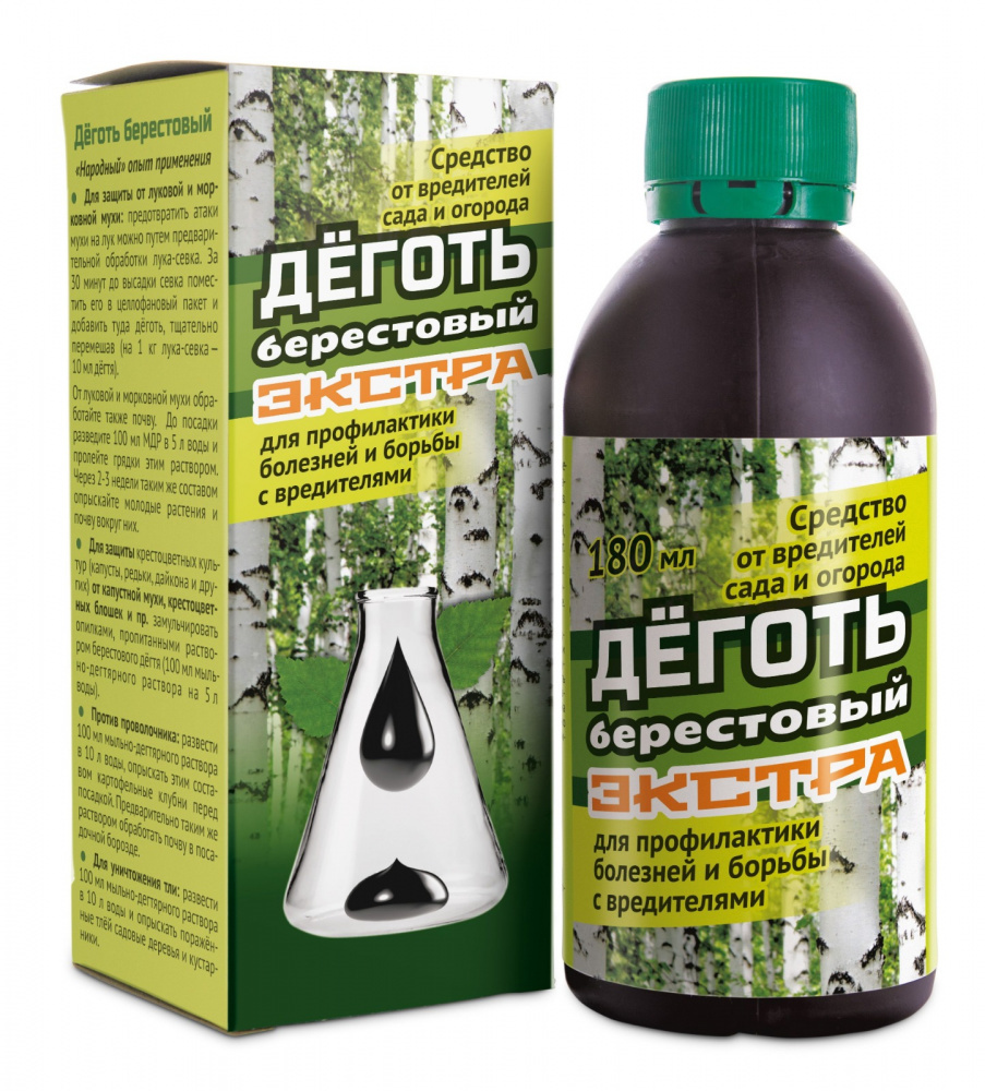 Березовый деготь - уникальное биологическое средство: отпугивает грызунов (кротов, крыс, мышей), насекомых-вредителей, используется для борьбы с болезнями растений. Деготь используется садоводами для замачивания семян и клубней растений, борьбы с вредителями и болезнями. Он обладает сильным специфическим запахом, который отпугивает насекомых, кротов, грызунов, а лечебные свойства дегтя помогают растениям бороться с различными заболеваниями.
