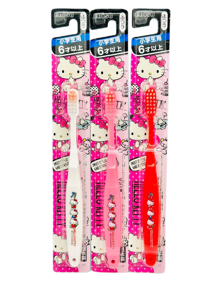 EBISU Детская зубная детская щетка Hello Kitty от 6 лет до 12 лет, средней жесткости, РОЗОВАЯ