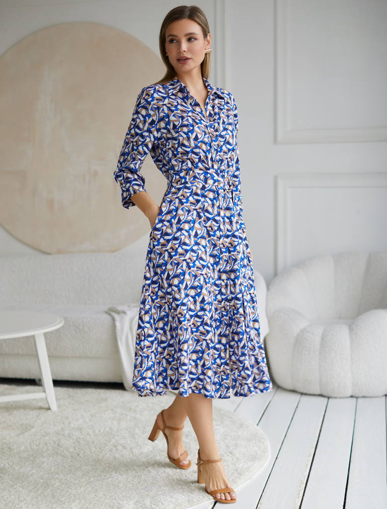 Состав: 100%Вис Плотность: 160 Г/м2 Платье выполнено из 100% вискозного твила. В комплект входит пояс из основного полотна с золотистой пряжкой. Модель дополнена карманами. Ткань приятно охлаждает кож... Показать описаниеу в жаркое время года и изящно струится при каждом движении.