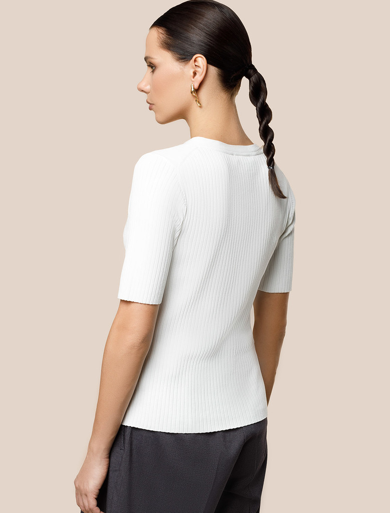 Состав: 95%Хлопок 5%ПУ Плотность: 230 Г/м2 Водолазка с коротким рукавом выполнена из фактурного трикотажа в рубчик. Модель идеально сидит по фигуре не сковывая движения. Хлопковый трикотаж поддерживае... Показать описаниет оптимальную температуру тела, поэтому в изделии будет комфортно в течении всего дня. Наличие эластана в составе гарантирует формоустойчивости. Водолазка отлично впишется в деловой дресс-код и подойдет для повседневного аутфита.