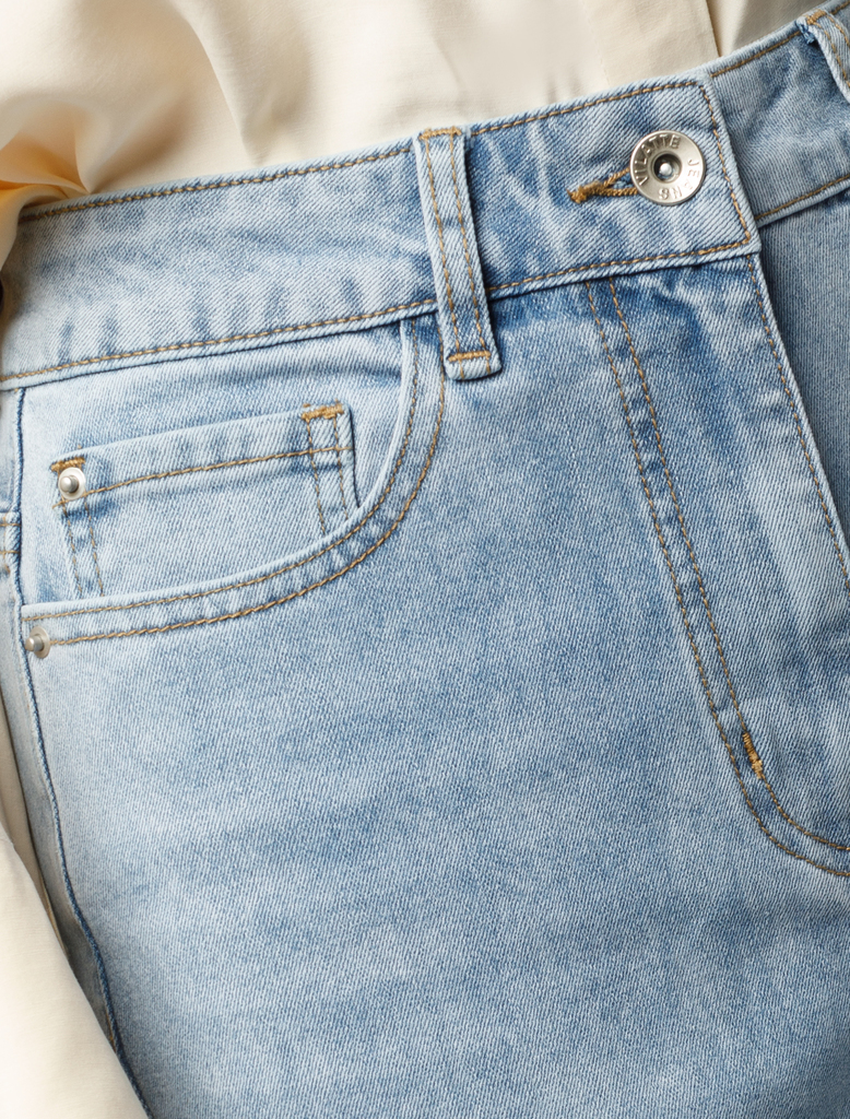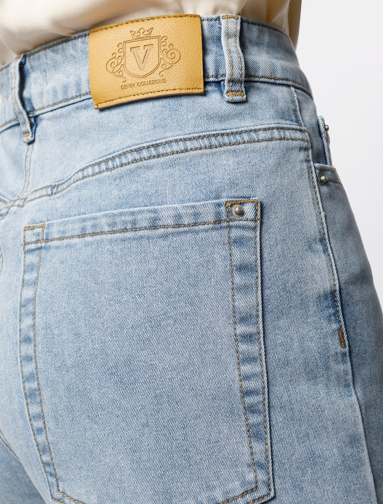 Состав: 98%Хлопок 2%ПУ Плотность: 300 OZ Параметры модели на первом фото: Рост 172, бюст 88, талия 64, бедра 88 Джинсы-трубы выполнены из мягкого хлопкового денима с эластаном. Модель свободного кроя ... Показать описаниес посадкой на талии визуально вытягивает силуэт и подчеркивает достоинства. Отлично впишется в расслабленные летние образы. Наличие эластана в составе способствует формустойчивости и комфортной носке. Изделие дополнено брендированным патчем из эко-кожи и сочетается в костюме с курткой D51.033