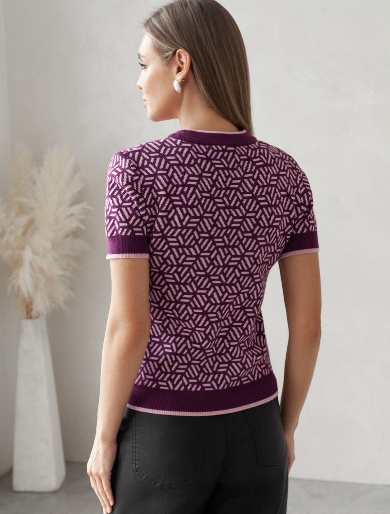 Состав: 50%Вис 20%ПА 20%ПЭ 10%Кашемир Плотность: 12 GG Параметры модели на первом фото: Рост 172, бюст 88, талия 64, бедра 88 Джемпер жаккардовой вязки выполнено из нежной пряжи на основе вискозы с до... Показать описаниебавлением кашемира. Модель прямого силуэта с застежкой планкой как у поло. Фигурные золотистые пуговицы вносят изысканности и роскоши. Изделие приятно ощущается на теле и поддерживает комфортный микроклимат. Сочетается в комплекте total-look с жакетом D31.150