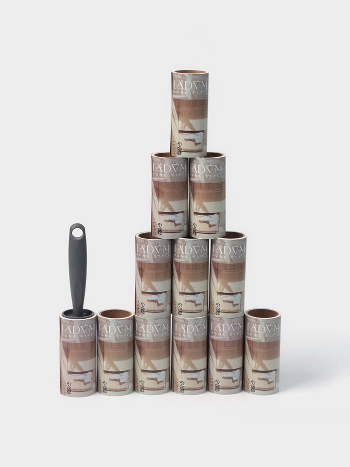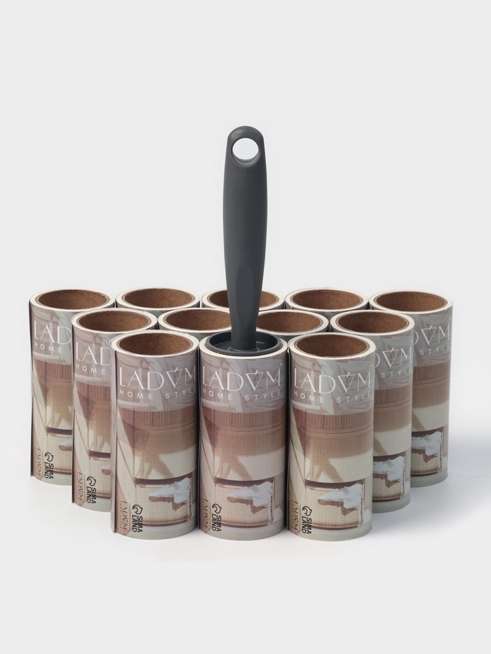 Ролик для одежды со сменными блоками LaDо?m, 12 шт. по 50 листов, эргономичная ручка, винтовая намоткаВопросы по товару
