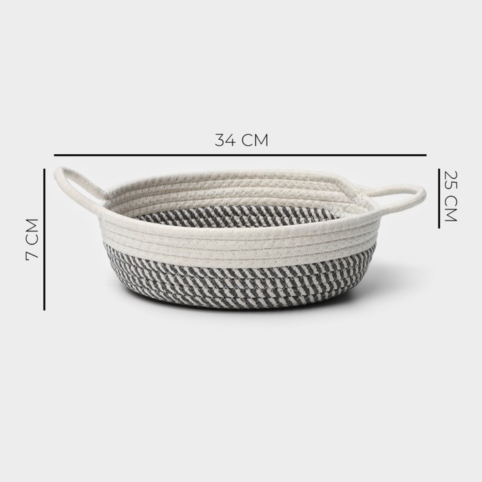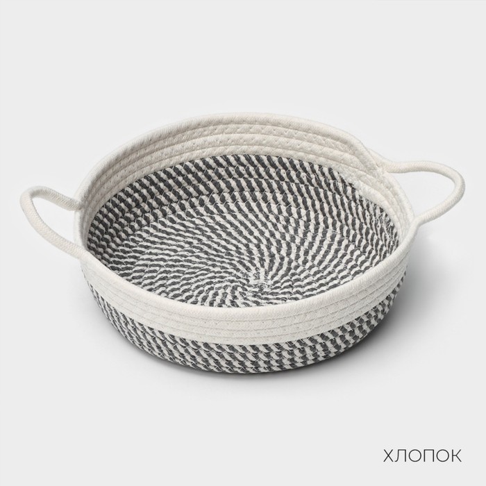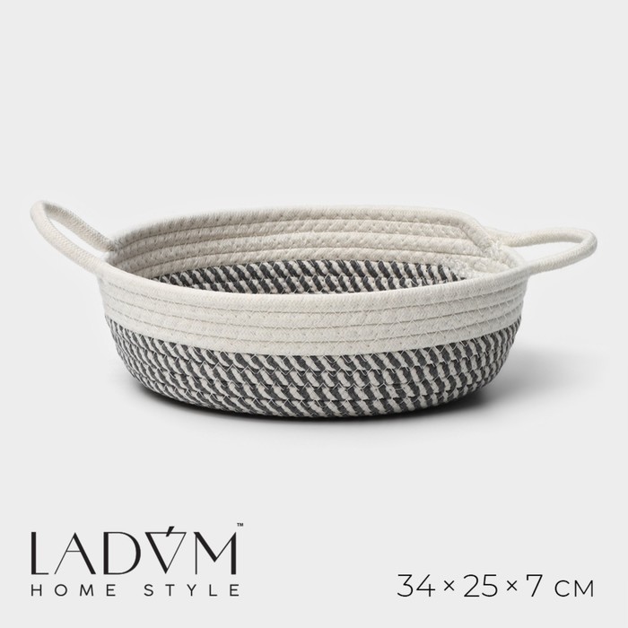 Корзина для хранения LaDо?m «Визави», плетёная, ручной работы, с ручками, хлопок, 34?25?7 см, сераяВопросы по товару