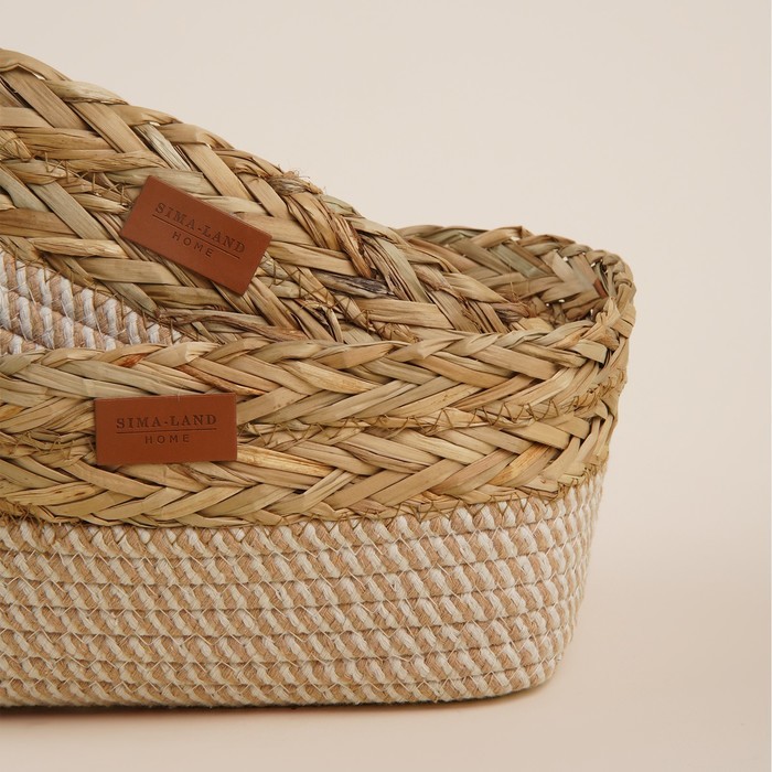 Набор элегантных плетёных корзина для хранения станет вашим незаменимым помощником в организации пространства и добавит в дом нотку уюта и стиля. С их помощью вы легко приведёте в порядок любые мелочи... Показать описание, от одежды до аксессуаров для рукоделия, сохранив при этом гармонию интерьера. Особенности: * Экологичность: изделия выполнено из натуральных материалов, что гарантирует безопасность для здоровья. * Эстетическая привлекательность: корзины имеют красивый естественный цвет и оригинальную текстуру, которая добавляет шарма в любой интерьер. * Универсальность: благодаря своей форме и размерам, корзины подходят для хранения различных предметов, таких как одежда, обувь, книги, игрушки и многое другое. * Удобство использования. Приобретая корзины для хранения, вы получаете не только функциональный предмет, но и стильный аксессуар, который станет изюминкой вашего интерьера и подчеркнёт индивидуальность вашего вкуса. Комплектация В комплекте: * Корзина (28?18?10 см) - 1 шт; * Корзина (30?20?12 см) - 1 шт; Дополнительно Внимание: Могут незначительно отличаться размеры, поскольку изделие сделано вручную. Не является признаком брака.