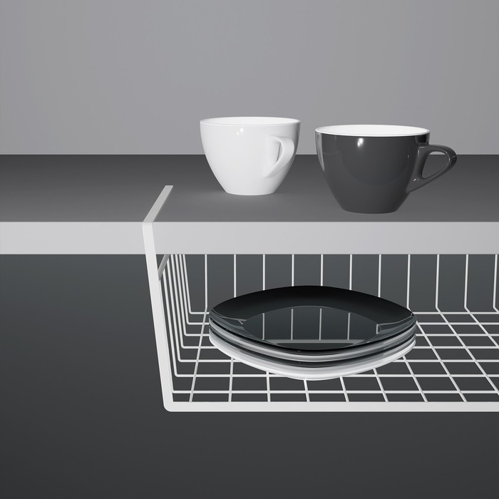 Сетчатая навесная корзинка от торговой марки Доляна предназначена для использования дополнительной возможности расширить имеющуюся полезную площадь на кухне. Преимущества: * Универсальный подвесной ор... Показать описаниеганайзер помогает решить проблему с ограниченным количеством мест хранения, эффективно использовать пространство в доме. * Полку можно использовать для сушки и хранения посуды, продуктов, столовых принадлежностей. * Её можно подвесить на стол, полку, полочку в холодильник и другие горизонтальные поверхности. * Крепится без сверления, надевается на стандартную полку. Дополнительно Для полки толщиной до 4 см