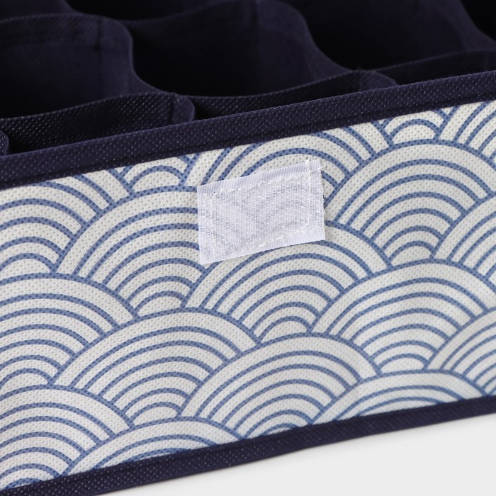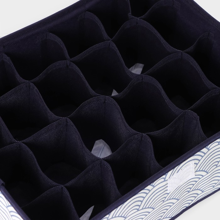Органайзер для хранения белья Доляна «Волна», 24 ячейки, с прозрачной крышкой, 38?30?12 см, синийВопросы по товару