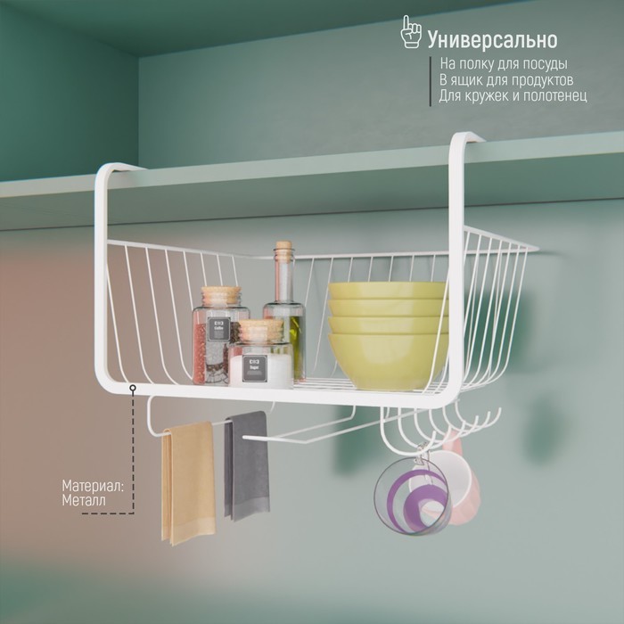 Корзина сетчатая навесная на полку Доляна, 40?25.5?14 см, белаяВопросы по товару