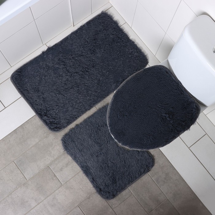 Набор ковриков для ванной и туалета Доляна «Пушистик», 3 шт., 40?44, 40?50, 50?80 см, серыйВопросы по товару