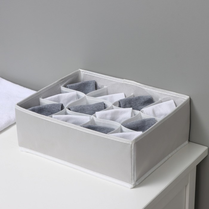 Органайзер для хранения белья LaDо?m, 12 ячеек, 32?24?12 см, серыйВопросы по товару