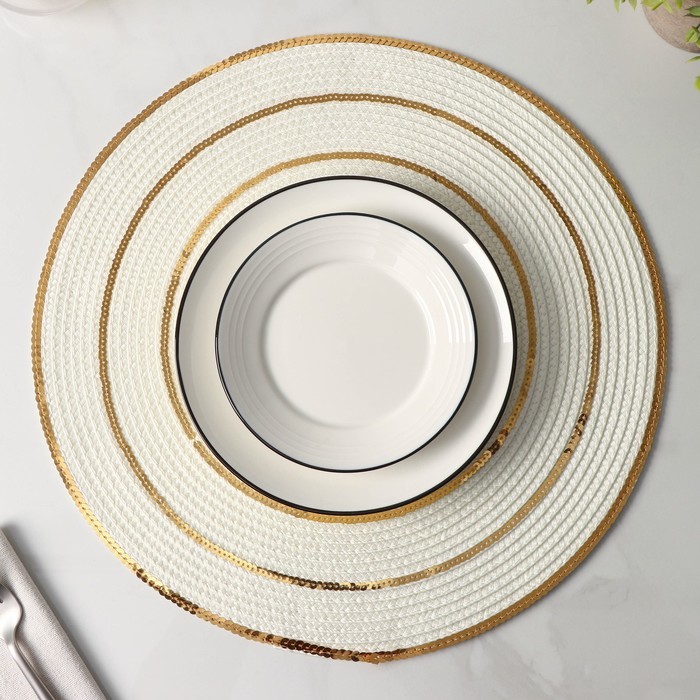 Салфетки сервировочные на стол Доляна, 4 шт., d=38 см, белые с золотым узоромВопросы по товару