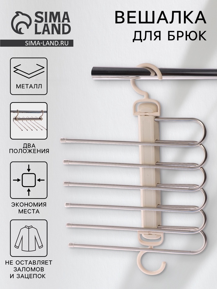 Брюки разных фасонов и моделей имеют одно общее свойство: их сложно хранить. На неудачно сложенной одежде могут появиться заломы и складки, из-за чего вещи приходится гладить повторно. Это маленькое н... Показать описаниееудобство можно решить с помощью специального предмета. Вешалка для брюк – это компактное приспособление, которое позволит разместить в гардеробе классические штаны из лёгких или плотных материалов. Изделие практичной формы занимает мало места, что позволяет экономить пространство в шкафу. Преимущества: * Небольшой размер; * Долговечность; * Удобство эксплуатации; * Безопасное покрытие. Дополнительно Универальны для любого размера одежды