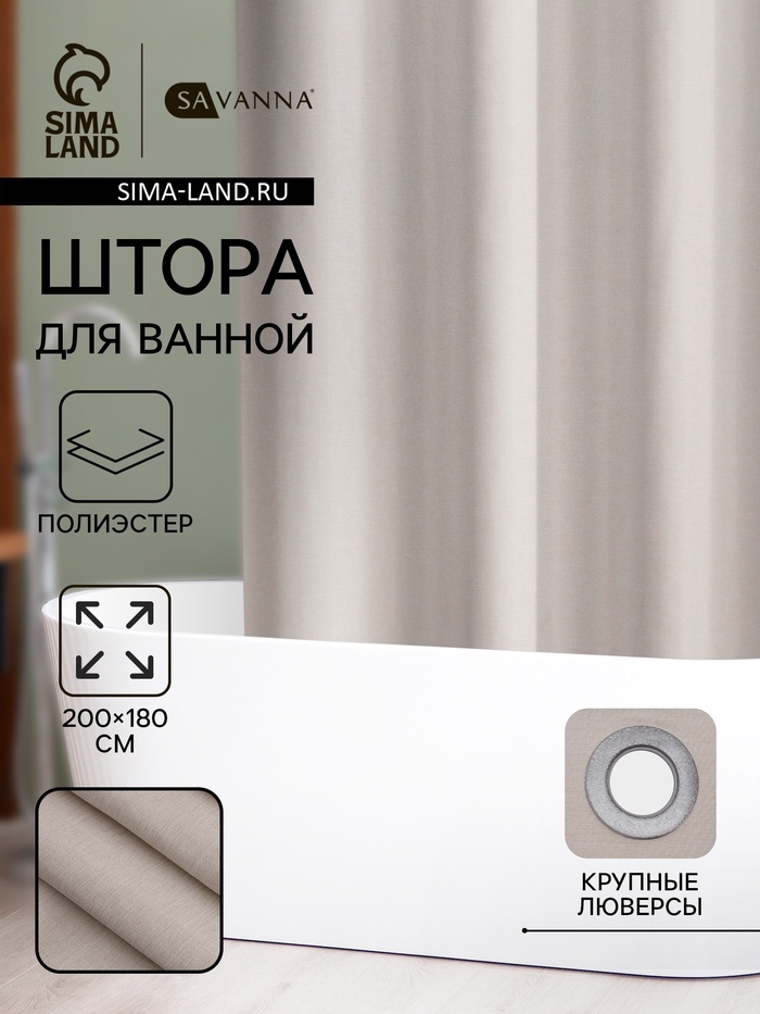 Штора для ванной SAVANNA «Натурель», 200?180 см, полиэстерВопросы по товару