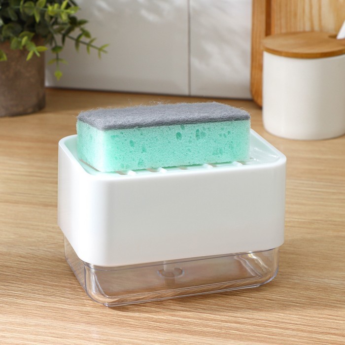 Дозатор для моющего средства с подставкой для губки Raccoon, губка в комплекте, цвет белыйВопросы по товару