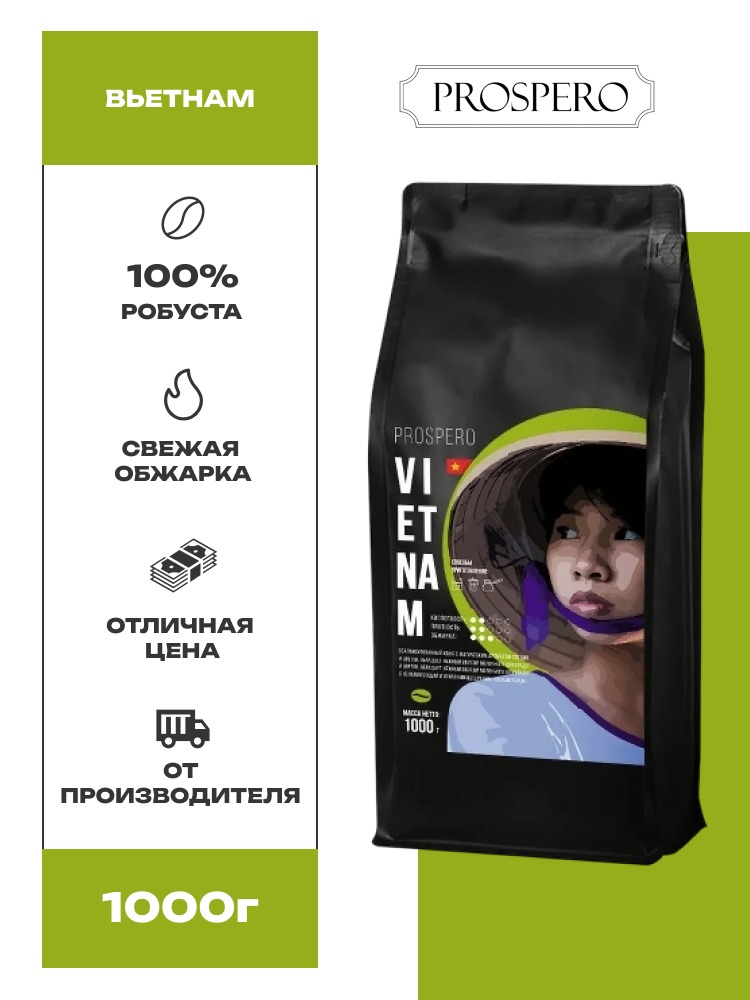 Кофе в зернах Prospero Вьетнам - это отличный выбор для настоящих ценителей кофе. Упаковка весом 1 кг предлагает вам возможность насладиться качественным напитком, изготовленным из 100% робусты, облад... Показать описаниеающего характерным насыщенным вкусом и ароматом. Кофе средней обжарки позволяет сохранить все его уникальные свойства и сделать каждую чашку по-настоящему неповторимой. Средняя обжарка зерен позволяет сбалансировать горечь и сладость, что делает кофе идеальным для утреннего пробуждения и приятных вечеров. Этот сорт будет особенно по душе любителям терпкого и ароматного кофе, который дарит заряд бодрости на весь день. Кофе выращен во Вьетнаме, что придаёт напитку особый восточный характер и неповторимый вкус. Аромат кофе раскрывается в каждой чашке, наполняя пространство теплотой и уютом. Такой кофе идеально подойдёт как для приготовления в кофеварке, так и для заваривания в турке. В чашке кофе раскроется табаком, тертым какао и черным душистым перцем. Состав: 100% робуста Вьетнам, кофе натуральный жареный в зёрнах.