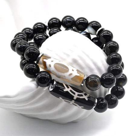 Браслет Дзи Колесо Фортуны цилиндр 10*29мм с агатом глазковым шарик 10мм, 18смВопросы по товару