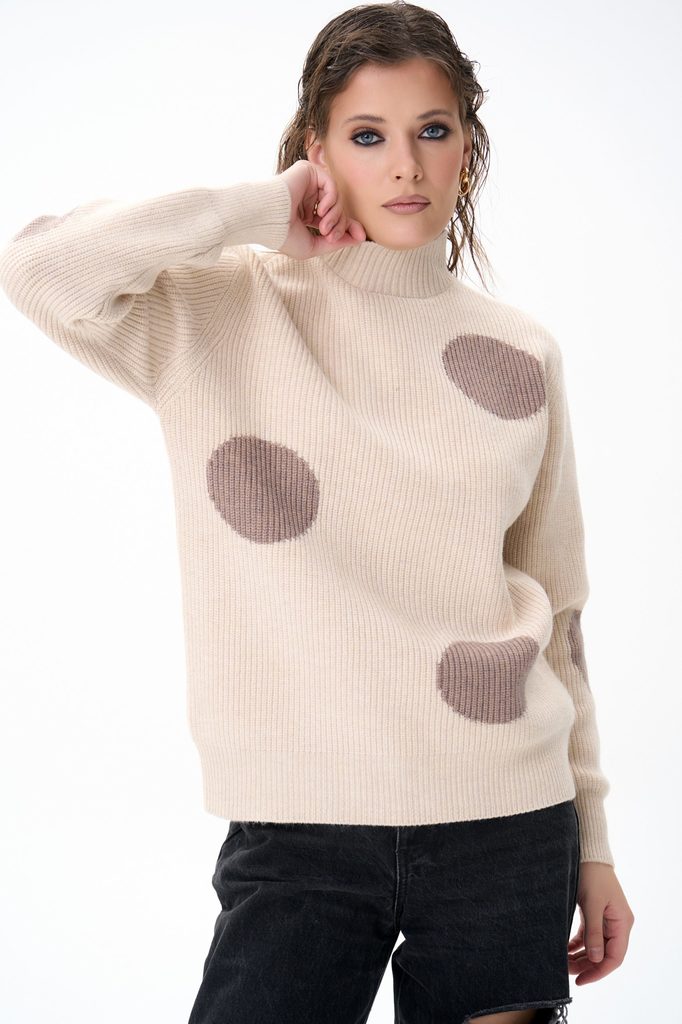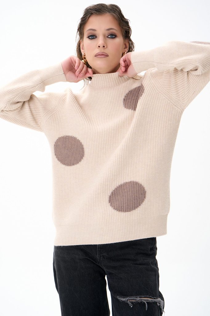 Состав: Хлопок – 50%, акрил – 50% | Длина изделия 70 см, рукав 58 см. Описание Тёплый и стильный свитшот «Зои» в оттенке мокко с принтом — идеальный выбор для комфортного повседневного образа. Модель ... Показать описаниесочетает женственный силуэт с непринуждённой свободой движений и подходит для любого сезона. Детали изделия: Классический крой с приспущенной линией плеч Цельновязанные рукава с эластичными манжетами Низ изделия на трикотажной резинке Круглая горловина с укреплённой планкой Средней плотности трикотаж для тепла и комфорта Аккуратный принт на лицевой части для стильного акцента