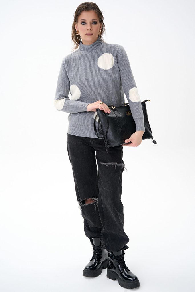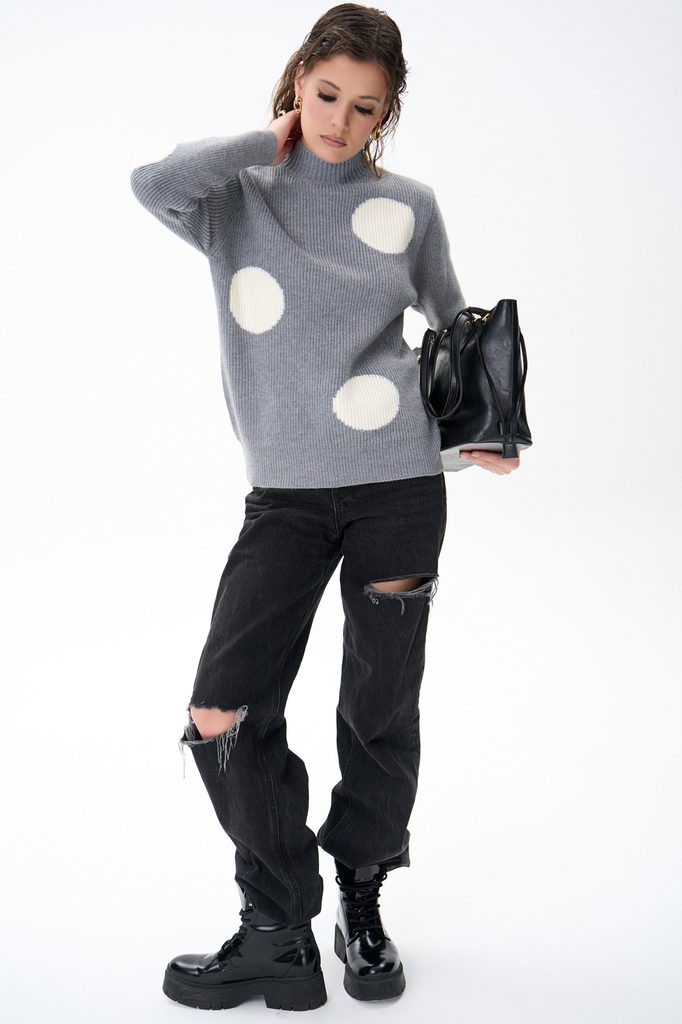 Состав: Хлопок – 50%, кашемир – 35%, шерсть – 10%, эластан – 5% Описание Уютный джемпер из мягкого вязаного трикотажа с добавлением хлопка и кашемира. Модель стандартной длины с прямым силуэтом и клас... Показать описаниесическим круглым вырезом. Эластичные манжеты и низ обеспечивают аккуратную посадку и комфорт в носке. Размер: единый (подходит на 46–54). Благодаря свободному силуэту и эластичной фактуре трикотажа, пуловер комфортно садится по фигуре разного типа — подчёркивает линию плеч, не обтягивает и создаёт аккуратный силуэт. Длина: ( 73 см, рукав 43 см). Детали и конструкция: Свободный силуэт; Классический круглый вырез горловины; Длинные рукава с аккуратной посадкой (не обтягивают); Эластичная нижняя кромка и манжеты для аккуратного завершения силуэта; Трикотаж средней плотности — тёпло и комфортно для межсезонья