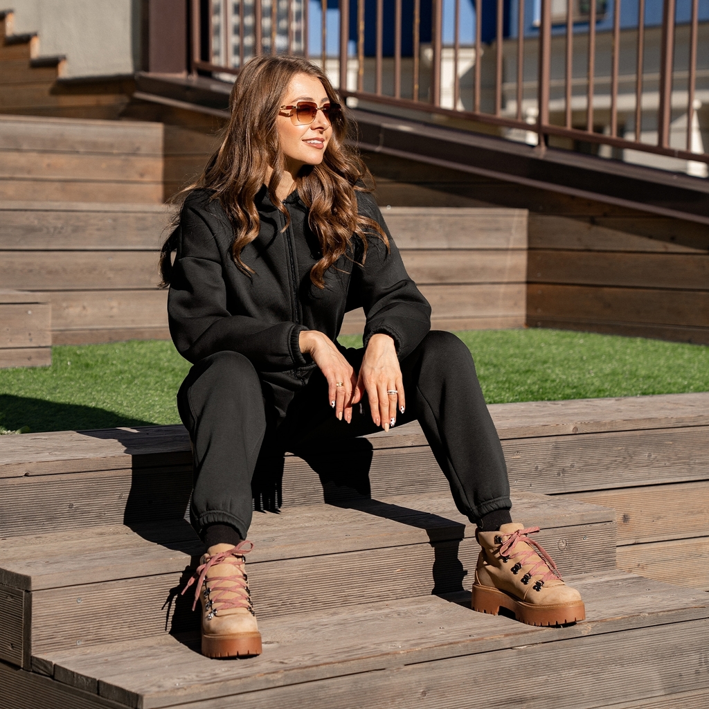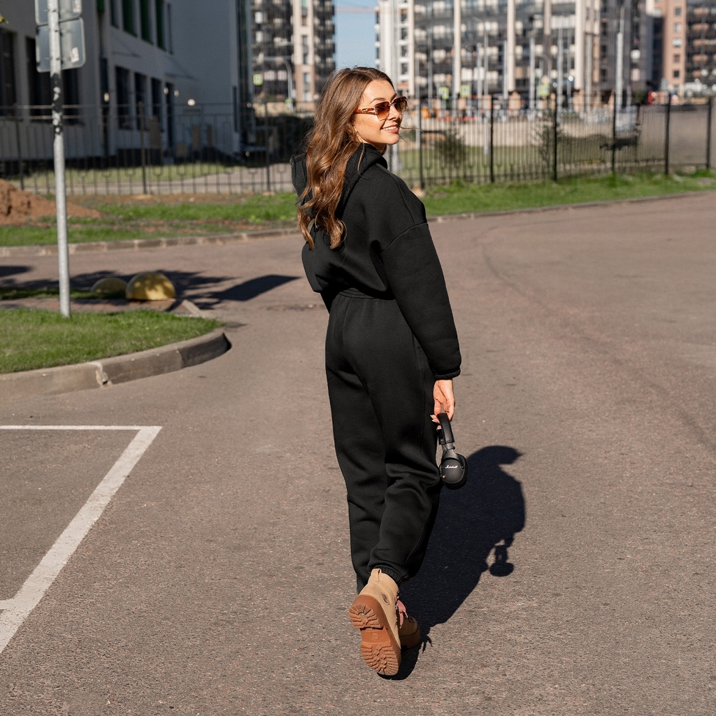 Женский комбинезон на молнии и капюшоном.Материал: French terry с/н - футер 3-х нитка с начесом. Одна из самых плотных разновидностей футера. Тёплый, приятный на ощупь материал с гладкой лицевой сторо... Показать описаниеной и мягким, толстым ворсом с изнанки.В стирке требует более бережного обращения. Рекомендуется утюжить и стирать вывернутыми (особенно изделия с принтом) на изнаночную сторону при температуре 30 градусов.ВНИМАНИЕ! Оттенок цвета ткани может отличаться в зависимости от партии товара, также могут быть незначительные отличия цветовых оттенков разных деталей одного изделия. Производители ткани не считают это браком, объясняя это технологическими особенностями производства. Цветовая гамма товара может быть изменена (в рамках допуска) производителем трикотажных полотен в зависимости от серии поставки без предварительного уведомления.В связи с этим, подбор комплекта одежды в одном оттенке возможен только в процессе формирования единого заказа.Состав: 70% Cotton 30% Polyester