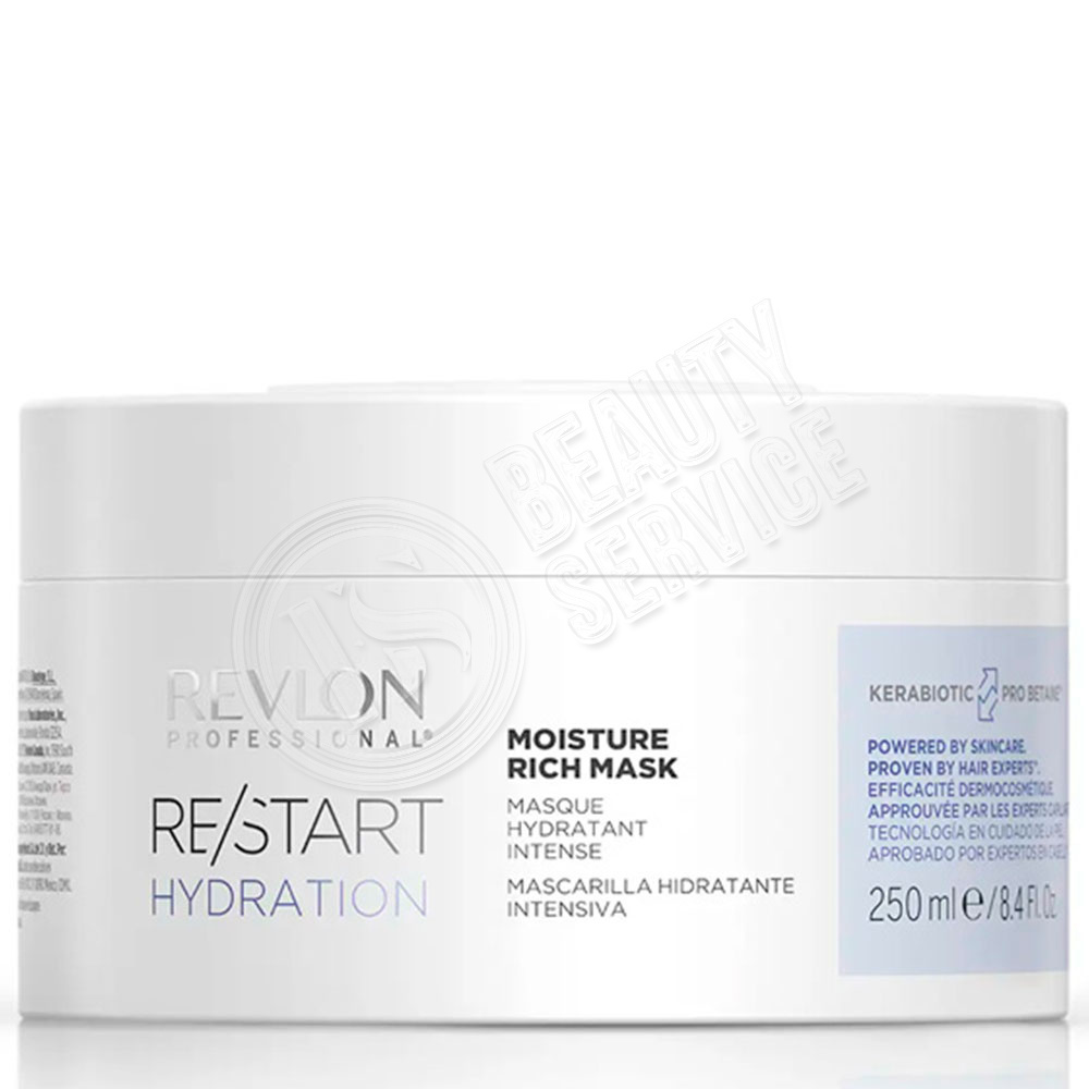 Линейка бренда: ReStart Hydration. Тип волос: Сухие. Бренд: REVLON PROFESSIONAL. Описание. Эта насыщенная двухфазная крем-маска помогает сбалансировать микробиом кожи головы\* и улучшает внешний вид в... Показать описаниеолос. Обогащённая бетаином и провитамином B5, она обеспечивает глубокое увлажнение и длительный контроль пушистости, делая волосы гладкими и ухоженными. **Кому подходит?**. Клиентам с очень сухими волосами, которые ищут интенсивный питательный уход. **Основные преимущества**. Обеспечивает длительный контроль пушистости. Глубоко питающая маска, которая удерживает влагу в структуре волос. Делает волосы гладкими, мягкими и ухоженными. \*При использовании с шампунем RE/START. Подробное описание: https://beautyservice.ru/catalog/dlya_volos/maski_dlya_volos/intensivno_uvlazhnyayushchaya_maska_revlon_professional_restart_hydration_moisture_rich_mask_250_ml/