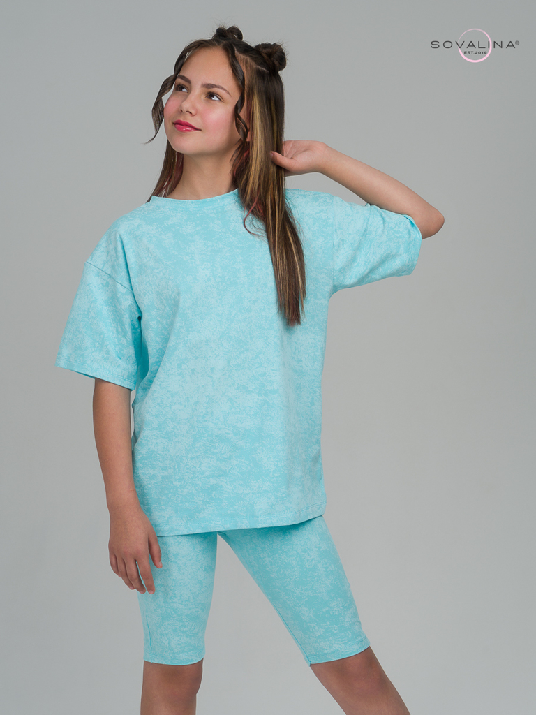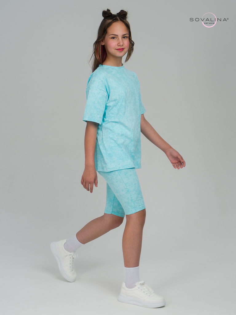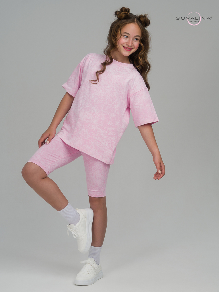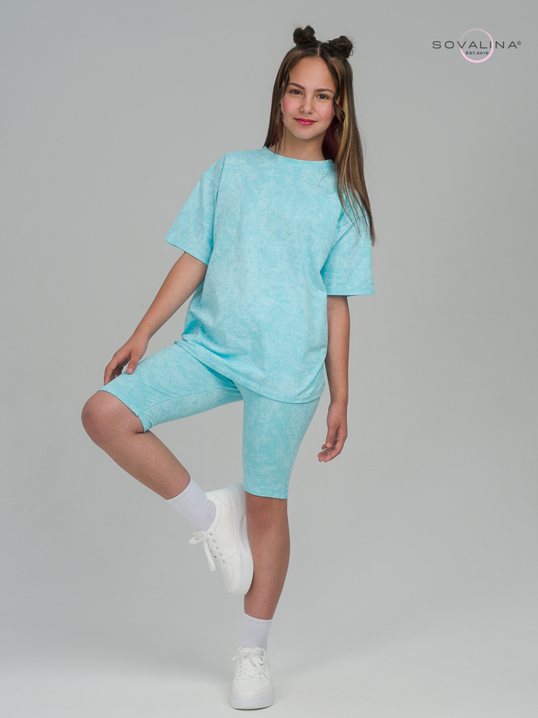 Этот костюм мы создали специально для красавиц, которые ценят стиль и комфорт в одном образе. Авторский принт, модное сочетание цветов и удобство в движении - это все есть в этом комплекте одежды. Кос... Показать описаниетюм универсален - можно носить по отдельности и вместе. У футболки отсутствуют пуговицы и молния. Благодаря этому, маленькая принцесса сможет самостоятельно надеть и снять наряд. Горловина не узкая и не широкая, сделана по стандартным лекалам. Велосипедки сделаны из эластичного материала, в пояс вшита резинка для удобства Вашей девочки. В них можно заниматься любыми активностями, ходить в школу, на летние прогулки и для домашнего времяпровождения. Минимальный оптовый заказ для новичков 5000 руб. Доставка по России и странам СНГ.