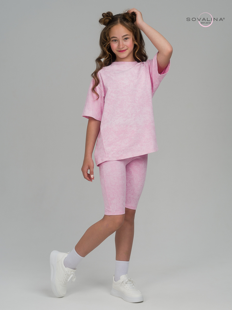 Этот костюм мы создали специально для красавиц, которые ценят стиль и комфорт в одном образе. Авторский принт, модное сочетание цветов и удобство в движении - это все есть в этом комплекте одежды. Ко... Показать описаниестюм универсален - можно носить по отдельности и вместе. У футболки отсутствуют пуговицы и молния. Благодаря этому, маленькая принцесса сможет самостоятельно надеть и снять наряд. Горловина не узкая и не широкая, сделана по стандартным лекалам. Велосипедки сделаны из эластичного материала, в пояс вшита резинка для удобства Вашей девочки. В них можно заниматься любыми активностями, ходить в школу, на летние прогулки и для домашнего времяпровождения. Минимальный оптовый заказ для новичков 5000 руб. Доставка по России и странам СНГ.