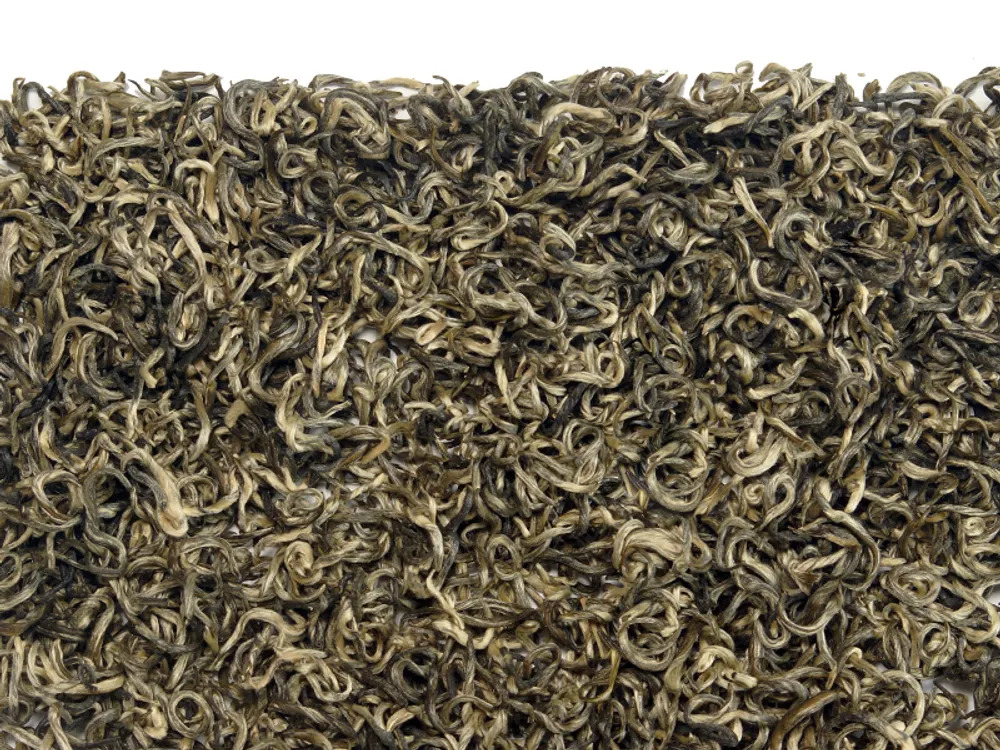 Этот скрученный зеленый чай производится из нежной флеши - серебристой почки и первого листа ранней весной в провинции Юннань. Чай обладает нежным свежим вкусом и легким ароматом полевых цветов. Освеж... Показать описаниеает и утоляет жажду. Состав: чай зеленый байховый крупный (листовой) (Китай).
