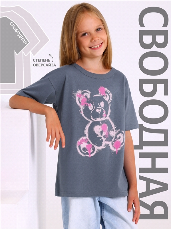 Оверсайз футболка для девочки выполнена из кулира - легкого хлопкового полотна. Изделие прямого покроя с короткими рукавами и круглым вырезом горловины, украшено печатью. Уход: только машинная стирка ... Показать описание(руками не стирать!) при температуре 40 градусов, без предварительного замачивания. Изделия с печатью перед стиркой необходимо вывернуть на изнаночную сторону. Состав: кулир / хлопок 100%.
