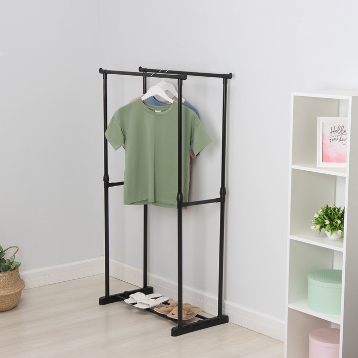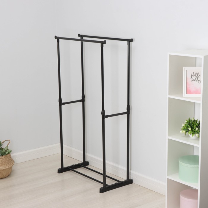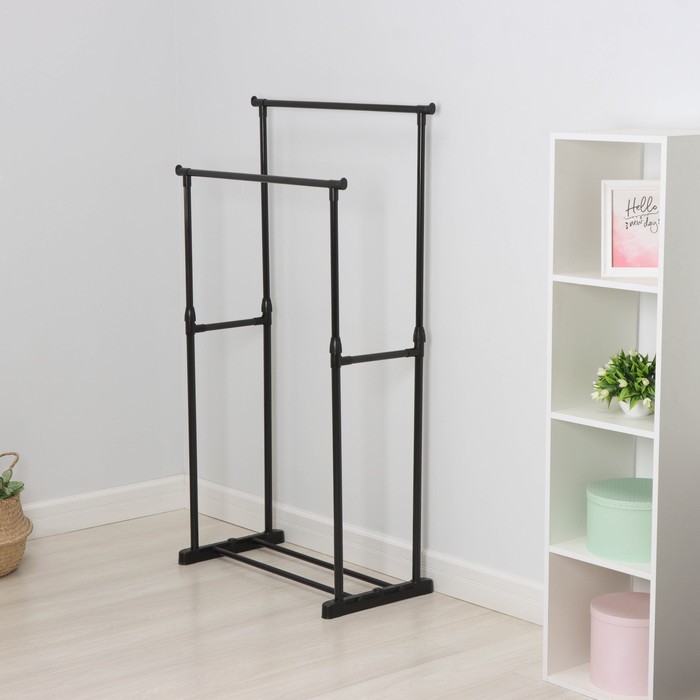 Вешалка - стойка напольная для одежды LaDо?m, двойная, телескопическая, 80?42?90(150) см, чёрнаяВопросы по товару